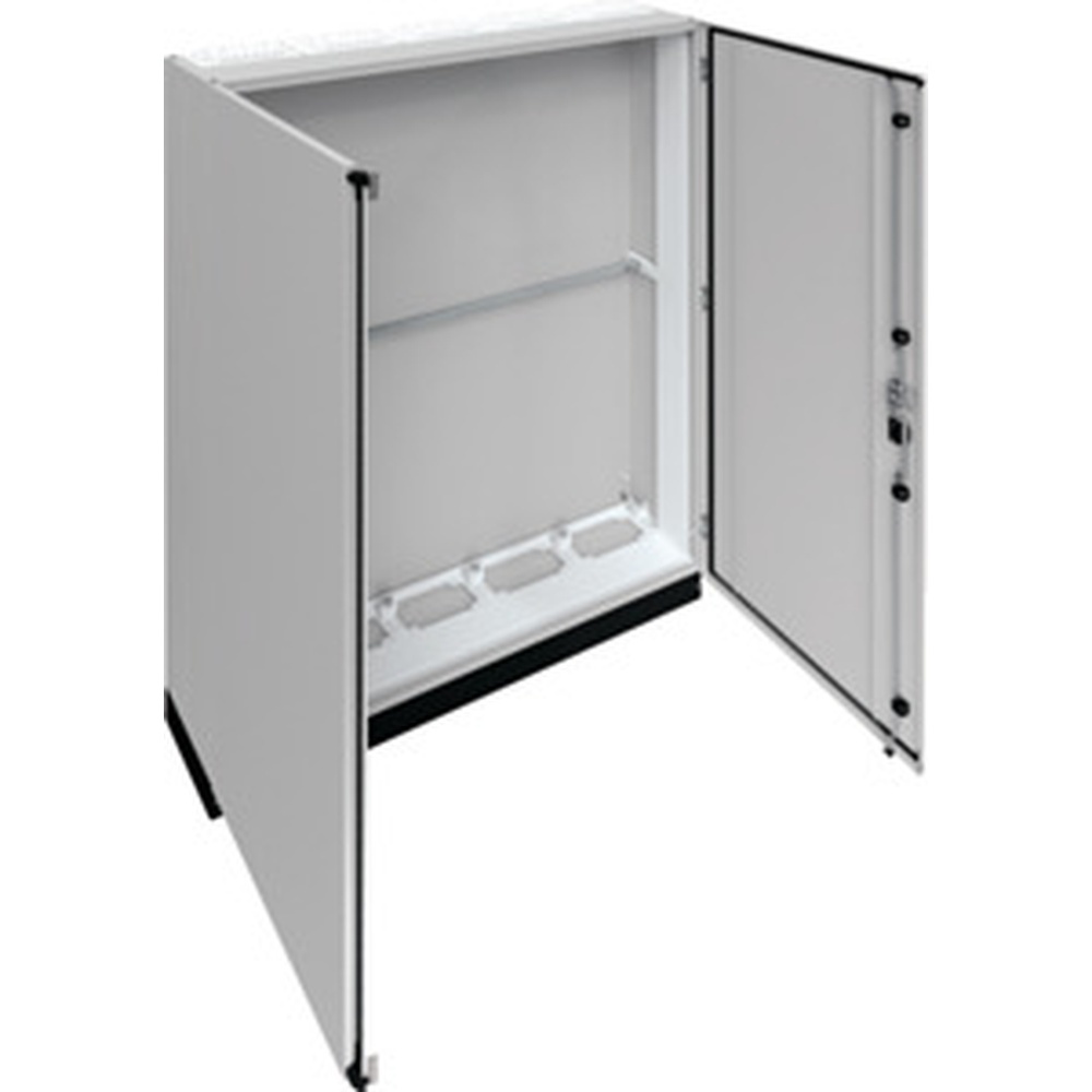 Hager Schrank FR25E1 Schr univers IP55 SKI 1950x1300x275mm Schrank univers IP55/I 1850x1300x275mm 100mm Sockel. Einzelstandverteiler für die Innenraummontage mit VDE-Gutachten Fertigungsüberwachung nach DIN EN 61439-1/-2/-3 und Maßnorm DIN 43 870 zur Aufputz Montage. Zum Aufbau einer Niederspannungsverteilung bis 800 A 3AC 230/400 V 50 Hz. Schutzart IP55 Schutzklasse I oder II Luft- und Kriechstrecken nach DIN VDE 0110-1/-2. Bestehend aus Schrank mit Tür aus pulverbeschichtetem eingebranntem profiliertem 1 5 mm dicken Stahlblech. Durchsteckflansche oben unten offen Leitungseinfügungen einbaubar . Sammelschienendurchführungen als seitliche Vorprägung. Tür aufliegend mit innen liegenden Scharnieren Türanschlag standardmäßig rechts wechselbar mit 110 Grad Öffnungswinkel. Serienmässig mit Schwenkhebelverschluss DIN-Profil-Halbzylinder einbaubar. Waagerechte Abfangschiene zur stabilisierung im Schrank enthalten. Türdichtung umlaufend geschäumt temperaturbeständig und ölbeständig. Sockelleiste Höhe 100 mm serienmäßig montiert mit abnehmbarer Frontblende. Hinweis Wand- und Bodenbefestigung notwendig! Türverschluß durch andere Schließungen austauschbar. Schrank nebeneinander anflanschbar. Hersteller Hager Nr. FR25E1 EAN Nr. 3250616004207 Warengruppe Hager Univers Schränke