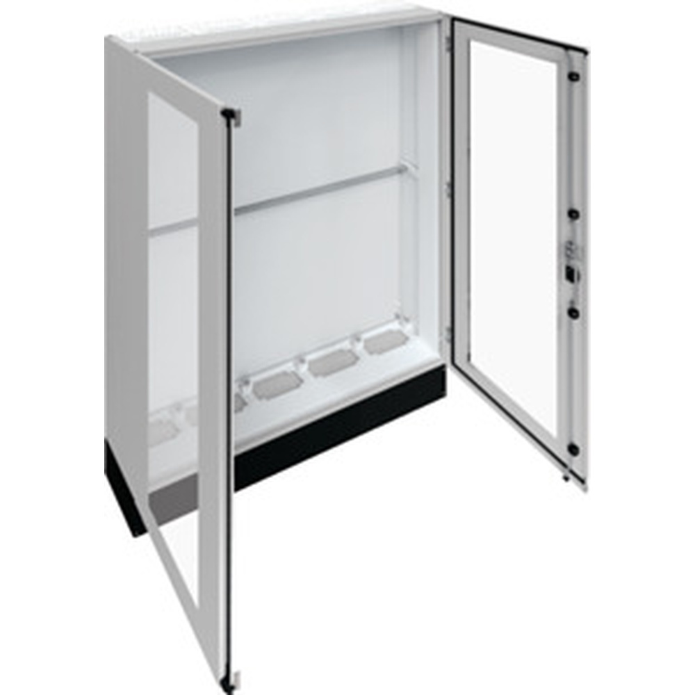 Hager Schrank FR25L2 Schr univers IP55 SKII 2050x1300x275mm Schrank univers IP55/II 1850x1300x275mm 200mm Sockel. Einzelstandverteiler für die Innenraummontage mit VDE-Gutachten Fertigungsüberwachung nach DIN EN 61439-1/-2/-3 und Maßnorm DIN 43 870 zur Aufputz Montage. Zum Aufbau einer Niederspannungsverteilung bis 800 A 3AC 230/400 V 50 Hz. Schutzart IP55 Schutzklasse I oder II Luft- und Kriechstrecken nach DIN VDE 0110-1/-2. Bestehend aus Schrank mit Tür aus pulverbeschichtetem eingebranntem profiliertem 1 5 mm dicken Stahlblech. Durchsteckflansche oben unten offen Leitungseinfügungen einbaubar . Sammelschienendurchführungen als seitliche Vorprägung. Tür aufliegend mit innen liegenden Scharnieren Türanschlag standardmäßig rechts wechselbar mit 110 Grad Öffnungswinkel. Serienmässig mit Schwenkhebelverschluss DIN-Profil-Halbzylinder einbaubar. Waagerechte Abfangschiene zur stabilisierung im Schrank enthalten. Türdichtung umlaufend geschäumt temperaturbeständig und ölbeständig. Sockelleiste Höhe 200 mm serienmäßig montiert mit abnehmbarer Frontblende. Hinweis Wand- und Bodenbefestigung notwendig! Türverschluß durch andere Schließungen austauschbar. Schrank nebeneinander anflanschbar. Hersteller Hager Nr. FR25L2 EAN Nr. 3250610701331 Warengruppe Hager Univers Schränke