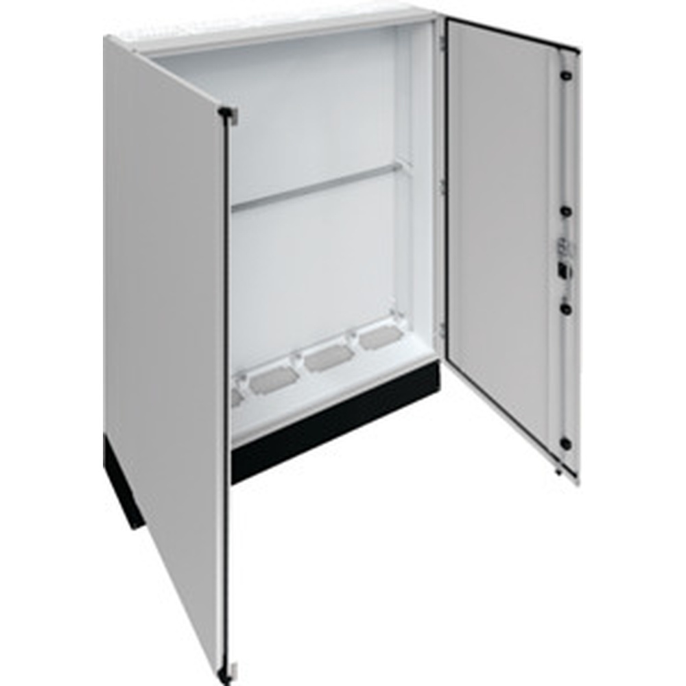Hager Schrank FR25S2 Schr univers IP55 SKII 2050x1300x275mm Schrank univers IP55/II 1850x1300x275mm 200mm Sockel. Einzelstandverteiler für die Innenraummontage mit VDE-Gutachten Fertigungsüberwachung nach DIN EN 61439-1/-2/-3 und Maßnorm DIN 43 870 zur Aufputz Montage. Zum Aufbau einer Niederspannungsverteilung bis 800 A 3AC 230/400 V 50 Hz. Schutzart IP55 Schutzklasse I oder II Luft- und Kriechstrecken nach DIN VDE 0110-1/-2. Bestehend aus Schrank mit Tür aus pulverbeschichtetem eingebranntem profiliertem 1 5 mm dicken Stahlblech. Durchsteckflansche oben unten offen Leitungseinfügungen einbaubar . Sammelschienendurchführungen als seitliche Vorprägung. Tür aufliegend mit innen liegenden Scharnieren Türanschlag standardmäßig rechts wechselbar mit 110 Grad Öffnungswinkel. Serienmässig mit Schwenkhebelverschluss DIN-Profil-Halbzylinder einbaubar. Waagerechte Abfangschiene zur stabilisierung im Schrank enthalten. Türdichtung umlaufend geschäumt temperaturbeständig und ölbeständig. Sockelleiste Höhe 200 mm serienmäßig montiert mit abnehmbarer Frontblende. Hinweis Wand- und Bodenbefestigung notwendig! Türverschluß durch andere Schließungen austauschbar. Schrank nebeneinander anflanschbar. Hersteller Hager Nr. FR25S2 EAN Nr. 3250610701348 Warengruppe Hager Univers Schränke