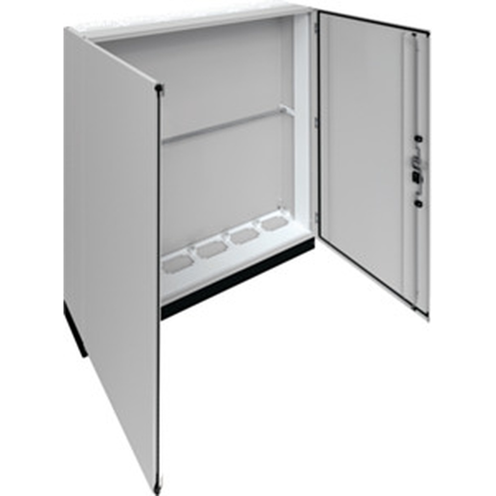 Hager Schrank FR26E1 Schr univers IP55 SKI 1950x1550x275mm Schrank univers IP55/I 1850x1550x275mm 100mm Sockel. Einzelstandverteiler für die Innenraummontage mit VDE-Gutachten Fertigungsüberwachung nach DIN EN 61439-1/-2/-3 und Maßnorm DIN 43 870 zur Aufputz Montage. Zum Aufbau einer Niederspannungsverteilung bis 800 A 3AC 230/400 V 50 Hz. Schutzart IP55 Schutzklasse I oder II Luft- und Kriechstrecken nach DIN VDE 0110-1/-2. Bestehend aus Schrank mit Tür aus pulverbeschichtetem eingebranntem profiliertem 1 5 mm dicken Stahlblech. Durchsteckflansche oben unten offen Leitungseinfügungen einbaubar . Sammelschienendurchführungen als seitliche Vorprägung. Tür aufliegend mit innen liegenden Scharnieren Türanschlag standardmäßig rechts wechselbar mit 110 Grad Öffnungswinkel. Serienmässig mit Schwenkhebelverschluss DIN-Profil-Halbzylinder einbaubar. Waagerechte Abfangschiene zur stabilisierung im Schrank enthalten. Türdichtung umlaufend geschäumt temperaturbeständig und ölbeständig. Sockelleiste Höhe 100 mm serienmäßig montiert mit abnehmbarer Frontblende. Hinweis Wand- und Bodenbefestigung notwendig! Türverschluß durch andere Schließungen austauschbar. Schrank nebeneinander anflanschbar. Hersteller Hager Nr. FR26E1 EAN Nr. 3250616005266 Warengruppe Hager Univers Schränke