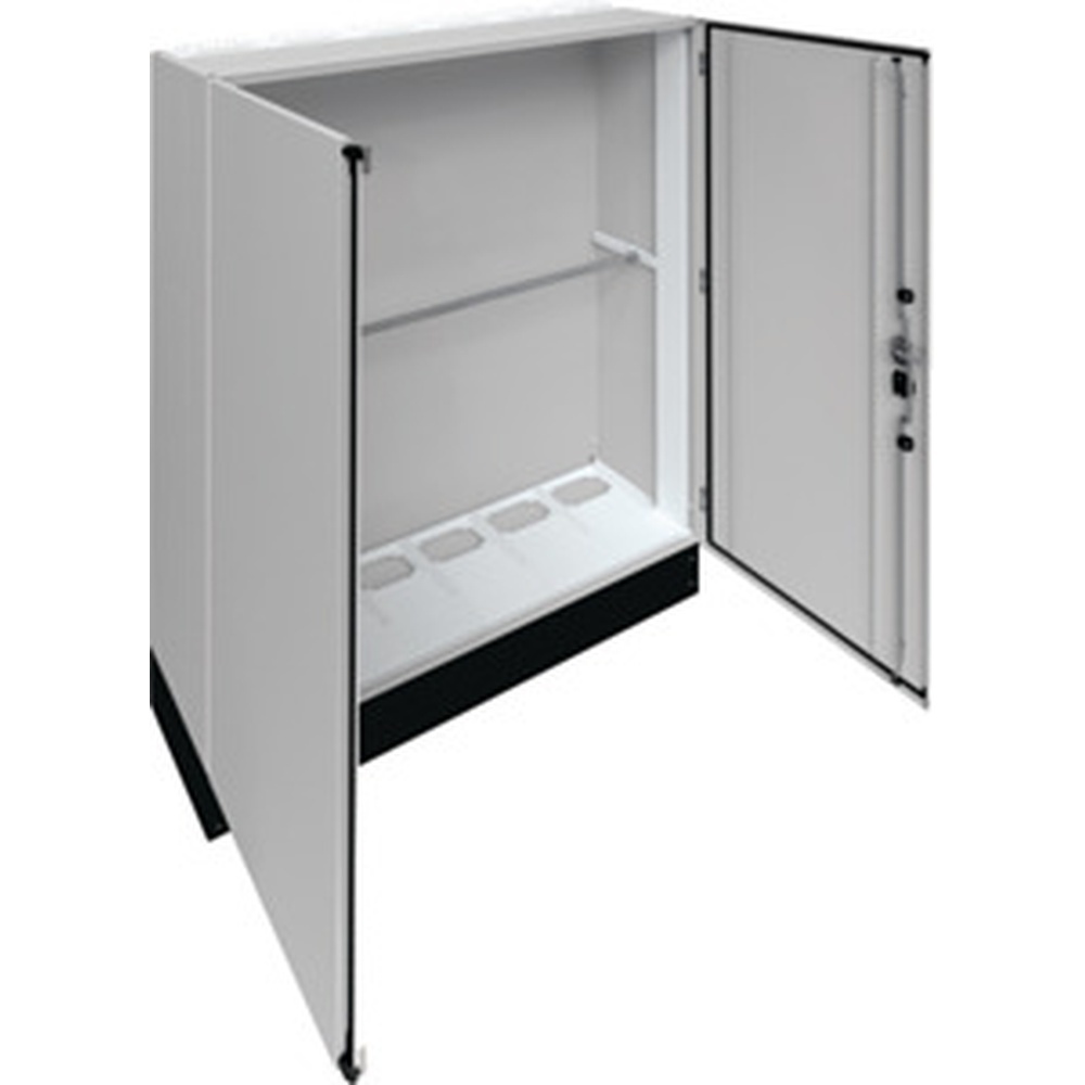 Hager Schrank FR26G2 Schr univers IP55 SKI 2050x1550x400mm Schrank univers IP55/I 1850x1550x400mm 200mm Sockel. Einzelstandverteiler für die Innenraummontage mit VDE-Gutachten Fertigungsüberwachung nach DIN EN 61439-1/-2/-3 und Maßnorm DIN 43 870 zur Aufputz Montage. Zum Aufbau einer Niederspannungsverteilung bis 800 A 3AC 230/400 V 50 Hz. Schutzart IP55 Schutzklasse I oder II Luft- und Kriechstrecken nach DIN VDE 0110-1/-2. Bestehend aus Schrank mit Tür aus pulverbeschichtetem eingebranntem profiliertem 1 5 mm dicken Stahlblech. Durchsteckflansche oben unten offen Leitungseinfügungen einbaubar . Sammelschienendurchführungen als seitliche Vorprägung. Tür aufliegend mit innen liegenden Scharnieren Türanschlag standardmäßig rechts wechselbar mit 110 Grad Öffnungswinkel. Serienmässig mit Schwenkhebelverschluss DIN-Profil-Halbzylinder einbaubar. Waagerechte Abfangschiene zur stabilisierung im Schrank enthalten. Türdichtung umlaufend geschäumt temperaturbeständig und ölbeständig. Sockelleiste Höhe 200 mm serienmäßig montiert mit abnehmbarer Frontblende. Hinweis Wand- und Bodenbefestigung notwendig! Türverschluß durch andere Schließungen austauschbar. Schrank nebeneinander anflanschbar. Hersteller Hager Nr. FR26G2 EAN Nr. 3250610701386 Warengruppe Hager Univers Schränke