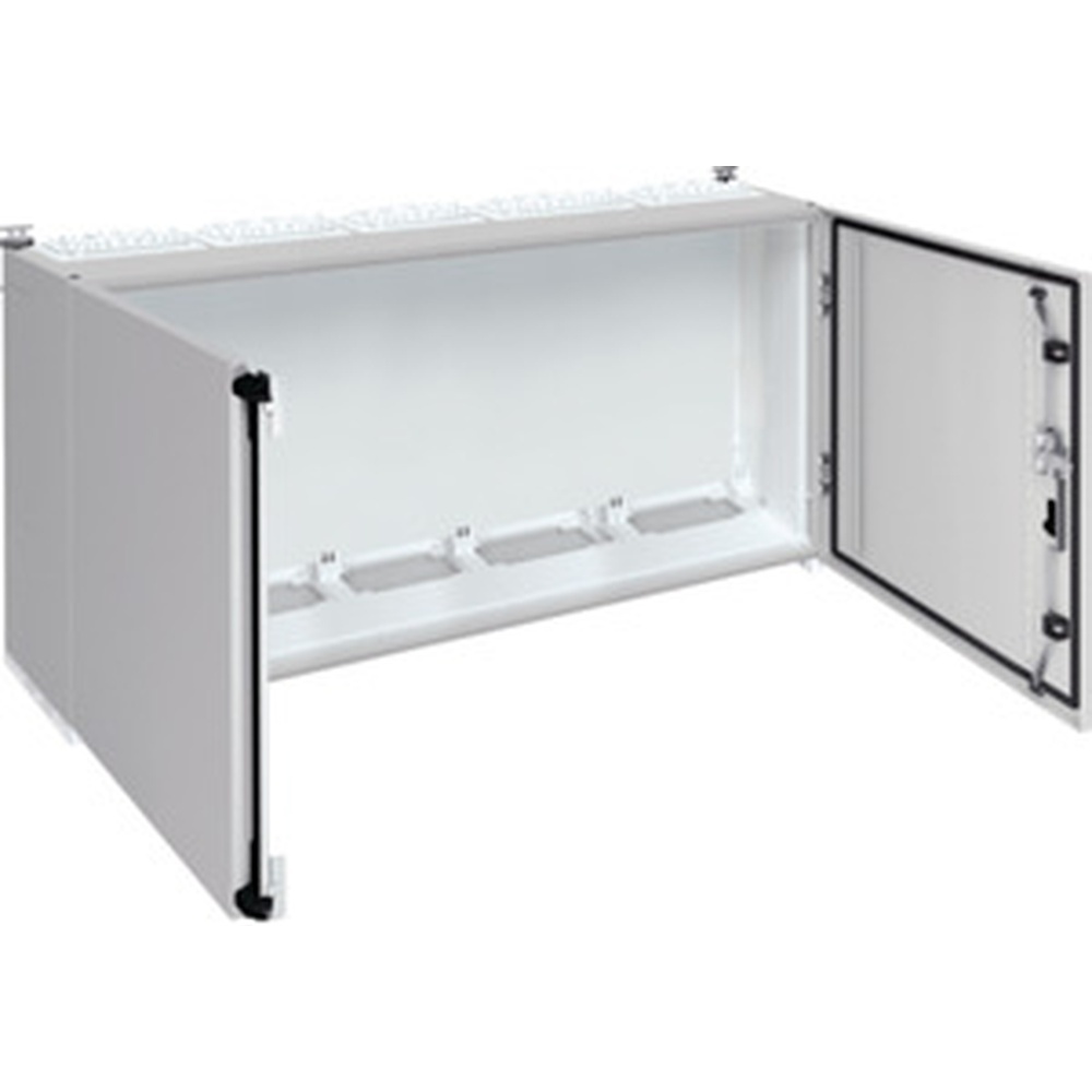 Hager Schrank FR55S Schr univers IP55 SKII 800x1300x275mm Schrank univers IP55/II 800x1300x275mm. Wandaufbauschrank für die Innenraummontage mit VDE-Gutachten Fertigungsüberwachung nach DIN EN 61439-1/-2/-3 und Maßnorm DIN 43870 zur Aufputz Montage. Zum Aufbau einer Niederspannungsverteilung bis 800 A 3AC 690 V 50 Hz. Schutzart IP55 Schutzklasse II Luft- und Kriechstrecken nach DIN VDE 0110-1/-2. Bestehend aus Schrank mit Tür aus pulverbeschichtetem eingebranntem profiliertem 1 5 mm dicken Stahlblech. Durchsteckflansche oben unten ISO-Flanschplatten mit metrischen Vorprägungen und Schnellverriegelung je Feld eingebaut. Sammelschienendurchführungen als seitliche Vorprägung. Tür aufliegend mit innenliegenden Scharnieren Türanschlag standardmäßig rechts wechselbar 110 Grad Öffnungswinkel. Serienmässig mit Schwenkhebelverschluss DIN-Profil-Halbzylinder einbaubar. Türdichtung umlaufend geschäumt temperaturbeständig und ölbeständig. Schrank nebeneinander und übereinander anflanschbar. Hersteller Hager Nr. FR55S EAN Nr. 3250610702604 Warengruppe Hager Univers Schränke