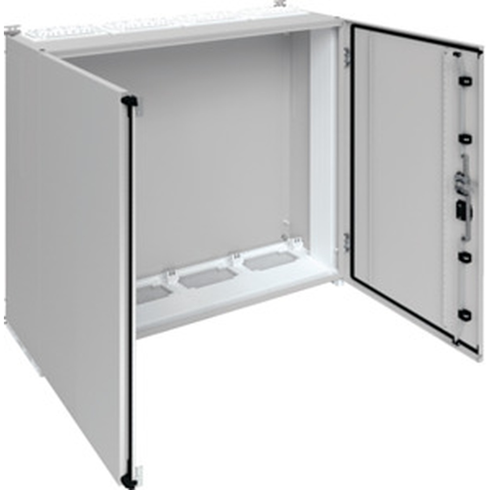 Hager Schrank FR74E Schr univers IP55 SKI 1100x1050x275mm Schrank univers IP55/I 1100x1050x275mm. Wandaufbauschrank für die Innenraummontage mit VDE-Gutachten Fertigungsüberwachung nach DIN EN 61439-1/-2/-3 und Maßnorm DIN 43870 zur Aufputz Montage. Zum Aufbau einer Niederspannungsverteilung bis 800 A 3AC 690 V 50 Hz. Schutzart IP55 Schutzklasse I Luft- und Kriechstrecken nach DIN VDE 0110-1/-2. Bestehend aus Schrank mit Tür aus pulverbeschichtetem eingebranntem profiliertem 1 5 mm dicken Stahlblech. Durchsteckflansche oben unten ISO-Flanschplatten mit metrischen Vorprägungen und Schnellverriegelung je Feld eingebaut. Sammelschienendurchführungen als seitliche Vorprägung. Tür aufliegend mit innenliegenden Scharnieren Türanschlag standardmäßig rechts wechselbar 110 Grad Öffnungswinkel. Serienmässig mit Schwenkhebelverschluss DIN-Profil-Halbzylinder einbaubar. Türdichtung umlaufend geschäumt temperaturbeständig und ölbeständig. Schrank nebeneinander und übereinander anflanschbar. Hersteller Hager Nr. FR74E EAN Nr. 3250610702772 Warengruppe Hager Univers Schränke