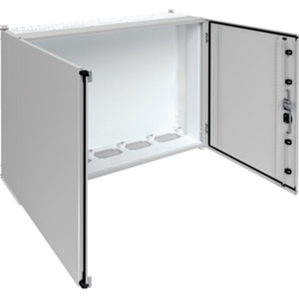 Hager Schrank FR75S Schr univers IP55 SKII 1100x1300x275mm Schrank univers IP55/II 1100x1300x275mm. Wandaufbauschrank für die Innenraummontage mit VDE-Gutachten Fertigungsüberwachung nach DIN EN 61439-1/-2/-3 und Maßnorm DIN 43870 zur Aufputz Montage. Zum Aufbau einer Niederspannungsverteilung bis 800 A 3AC 690 V 50 Hz. Schutzart IP55 Schutzklasse II Luft- und Kriechstrecken nach DIN VDE 0110-1/-2. Bestehend aus Schrank mit Tür aus pulverbeschichtetem eingebranntem profiliertem 1 5 mm dicken Stahlblech. Durchsteckflansche oben unten ISO-Flanschplatten mit metrischen Vorprägungen und Schnellverriegelung je Feld eingebaut. Sammelschienendurchführungen als seitliche Vorprägung. Tür aufliegend mit innenliegenden Scharnieren Türanschlag standardmäßig rechts wechselbar 110 Grad Öffnungswinkel. Serienmässig mit Schwenkhebelverschluss DIN-Profil-Halbzylinder einbaubar. Türdichtung umlaufend geschäumt temperaturbeständig und ölbeständig. Schrank nebeneinander und übereinander anflanschbar. Hersteller Hager Nr. FR75S EAN Nr. 3250610702802 Warengruppe Hager Univers Schränke
