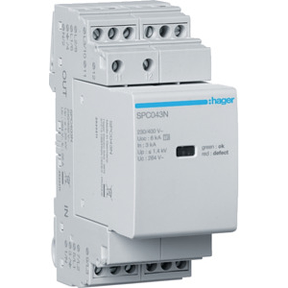 Hager Überspannungsableiter SPC403N Überspannungsableiter T3 3P+N 3kA Überspannungsableiter T3 3P+N Uc 264V In 3kA Up 1.4kV Kontakt. Geräteschutz Typ 3 für 5-Leiter-Systeme (L1, L2, L3, N, PE) bestehend aus Schutzstecker und Basiselement für die Hutschienenmontage. Optische rot/grün Statusanzeige und Fernmeldekontakt zur Fehlersignalisierung. Integrierte, stoßstromfeste Sicherungen für elektrische und thermische Überlast. Stecker mit individueller Beschriftungsfläche, werkzeuglos steck- und ziehbar und durch mechanische Kodierung gegen Fehlbestückung geschützt. Hersteller Hager EAN Nr. 3250615514943 Warengruppe Hager Schutz Mess Dämmerungsschalter