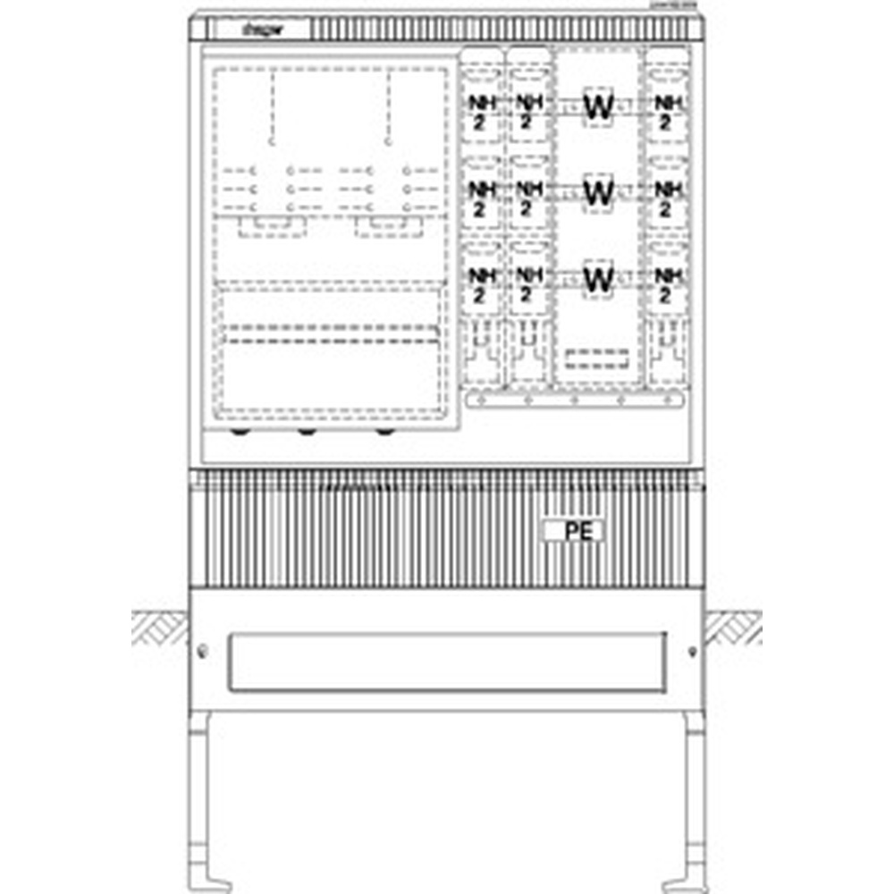Hager Wandler und Messschrank ZAW102DD8 Wa+MeSchrank,univN, 250A,LEW/Bayernw Wandler- und Messschrank, universN, bis 250 A, LEW/Bayernwerke AG.Bestückte Wandlerschrank nach DIN EN 61439, Schutzart IP 44, mit Eingrabsockel, aus glasfaserverstärktes Polyester FS 833.5 nach DIN EN 14598 mit Recyclat. Wandlerschrank ist nach den aktuellen technischen Anschlussbedingungen des jeweiligen Energieversorgers bestückt und deckt die jeweiligen TAB-Anforderungen ab. Profiliertes Gehäuse im Rippendesign. Tür mit Öffnungswinkel 180 Grad bei freiem Stand und 90 Grad bei angereihten Gehäusen. Türen sind aushängbar, Türanschlag links oder rechts möglich. Schließung mit Schwenkhebel und Drei-Punkt-Basküleverschluss mit 1 bzw. 2 Profilhalbzylindern. Eingebauter Zylinder unten mit gleichschließender Serie. Ein zweiter Schließzylinder (z. B. aus VNB-Schließanlage) kann oben nach Entfernen des Vierkantverschlusses eingebaut werden. Wenn kein zweiter Profilhalbzylinder eingebaut wird, muss die zweite obere Öffnung mit einem Blindverschluss bestückt werden. Die Belüftung erfolgt über labyrinthartig ausgebildete Lüftungskanäle und ist durch Eindringen von Fremdkörpern stochersicher. Wandlerschränke sind gebaut nach technischer Richtlinie Anschlussschränke im Freien/Anschluss von ortsfesten Schalt- und Steuerschränken und Zähleranschlusssäulen an das Niederspannungsnetz des VNB. Der Einbau besteht aus schutzisolierten Zählerfeldern DIN 43870 (Funktionsflachen) für Zähler und Tarifschaltgerät (TSG). Zählerplätze bzw. TSG-Platz sind vorgerichtet mit einer IP54 Abdeckung. Je nach Ausführung sind Leerplätze als Nachrüstfelder vorgesehen. Eingrabsockel und Zähleranschlusssäule bilden eine Einheit. Ein Bodenrost ist empfohlen. Zur Betauungsvermeidung ist der Sockel bis zur Höhe der Kabelbefestigungsschiene innen mit Sockelfüller aufzufüllen. Hinweis: Rücksprache mit VNB. Hersteller Hager Nr. ZAW102DD8 EAN Nr. 3250611071938 Warengruppe Hager Univers Z System