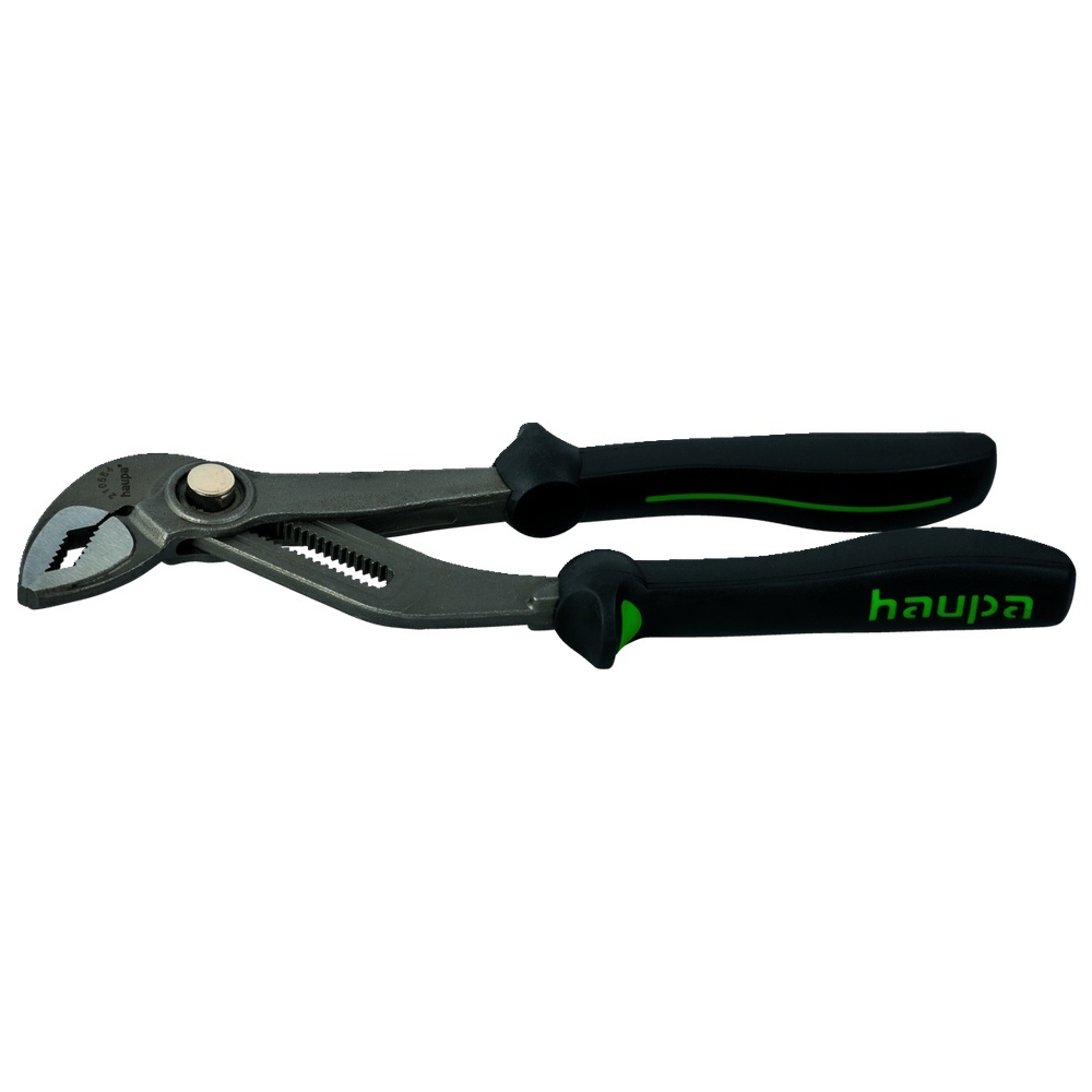 Haupa 2K Wasserpumpenzange 210584 2K Wasserpumpenzange isoliert CV Werkzeugstahl, geschmiedet und vergütet, Brennermaul, Greifbacken gehärtet, selbstsichernde Mutter, Fingerklemmschutz, mit 2 Komponenten Griff und Abgleitschutz, verchromt Wasserpumpenzange DIN 8976 EAN Nr. 4011923160494 Warengruppe Haupa Zangen