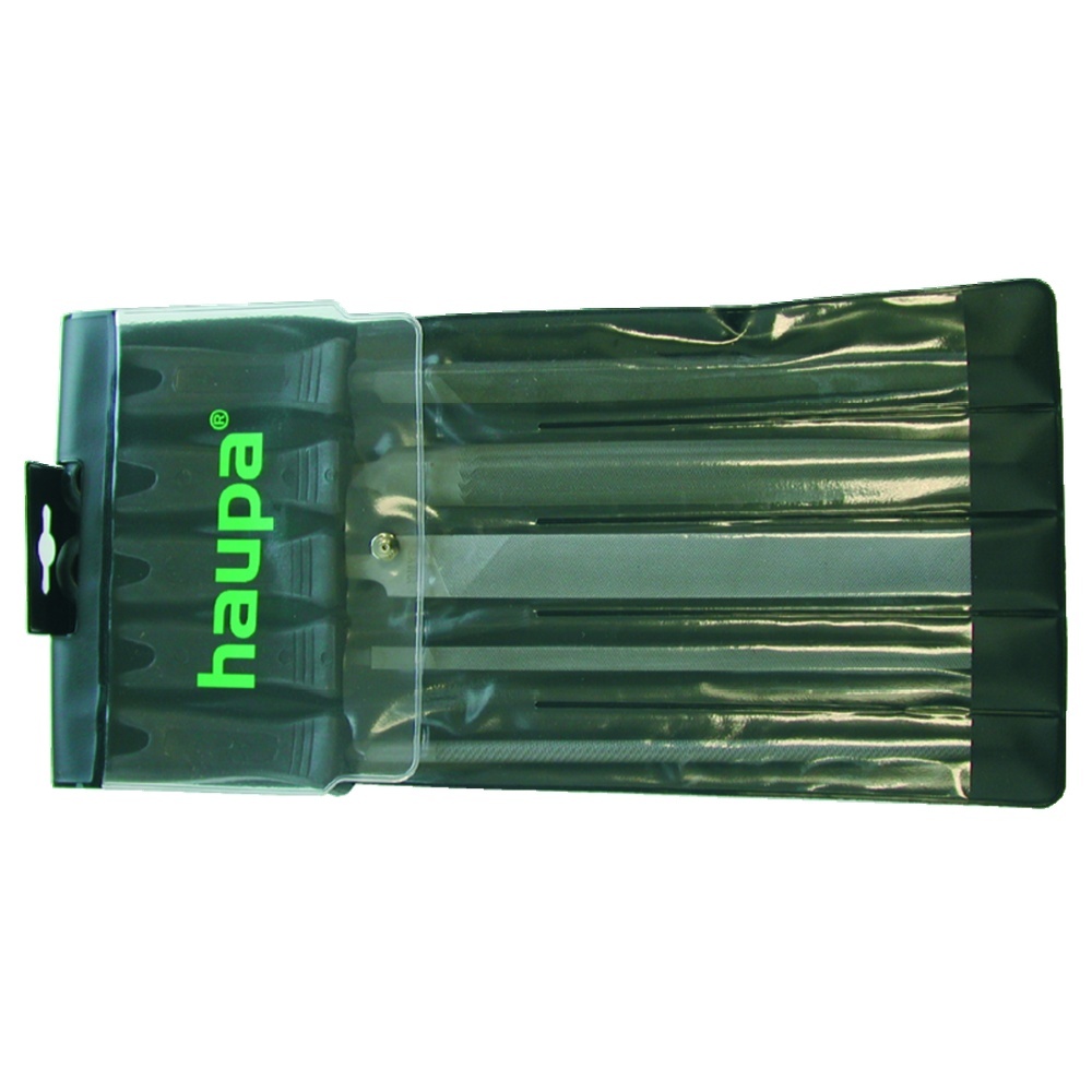 Haupa Feilensatz 190130 Feilensatz Hieb 1, 5 tlg. Satz: 5 teilig, in SB Taschen, Feilen mit Plastikheften Form: rund vierkant flach halbrund dreikant Feilensortiment je 200 mm EAN Nr. 4011923064433 Warengruppe Haupa Feilen u. Stechbeitel