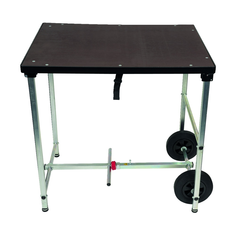 Haupa Klappwerkbank 392807 Klappwerkbank HUPmobileWork Rückenschonendes Arbeiten bei maximaler Arbeitssicherheit! Leichter Transport mit einer Hand – durch Räder und Zugstange mühelos zu bewegen, einfacher Klappmechanismus – schnell zusammengebaut. Sicherer Stand! Die kompakte Klappwerkbank HUPmobileWork bietet das perfekte Verhältnis von Gewicht, Mobilität, Stabilität, Größe und Funktionalität. Ideal für den Einsatz auf Baustellen, sowie platzsparend und mobil. Gewicht unter 20 kg Arbeitsfläche 785x585 mm und eine 30 mm starke Siebdruckplatte Arbeitshöhe 800 – 825 mm durch vier verstellbare Füße zum Ausgleich auf unebenen Untergründen Belastbarkeit bis zu 200 kg (Flächentraglast) Maße zusammengeklappt 785x250x585 mm Zwei große Kunststoffräder und ausklappbare Zugstange für den leichten Transport im zusammengeklappten Zustand Kann im aufgebauten Zustand durch ankippen der Werkbank über die beiden Räder verschoben werden Tischbeine aus verzinktem Vierkantrohr werden durch eine Querstange mit Federmechanismus arretiert, für einen festen Stand Siebdruckplatte mit rutschhemmender Oberfläche und in T-Profil Stahlrahmen eingefasst Montage von Schraubstock und anderen Haltesystemen möglich Hersteller Haupa Nr. 392807 EAN Nr. 4011923630249 Warengruppe Haupa Werkstattbedarf