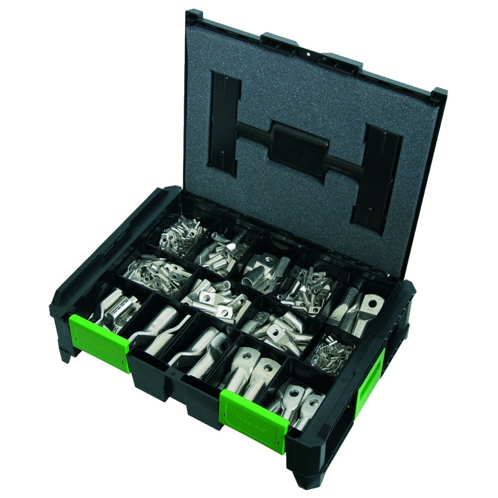 Haupa Presskabelschuhe 220387 SysCon Presskabelschuhe Inhalt: 389 verzinnte Presskabelschuhe DIN SysCon Presskabelschuhe DIN 46235 \1\220370\ABS Kunststoffbox „SysCon S“ \2\220376\Schaumeinlage „SysCon“ 400x300x15 mm \100\290404\Presskabelschuhe DIN\6\M6 \100\290412\Presskabelschuhe DIN\10\M8 \50\290418\Presskabelschuhe DIN\16\M8 \50\290426\Presskabelschuhe DIN\25\M8 \25\290434\Presskabelschuhe DIN\35\M8 \18\290442\Presskabelschuhe DIN\50\M10 \12\290450\Presskabelschuhe DIN\70\M10 \10\290458\Presskabelschuhe DIN\95\M12 \12\290464\Presskabelschuhe DIN\120\M12 \4\290472\Presskabelschuhe DIN\150\M12 \4\290480\Presskabelschuhe DIN\185\M12 \4\290486\Presskabelschuhe DIN\240\M12 EAN Nr. 4011923557546 Warengruppe Haupa Verbrauchsmaterial