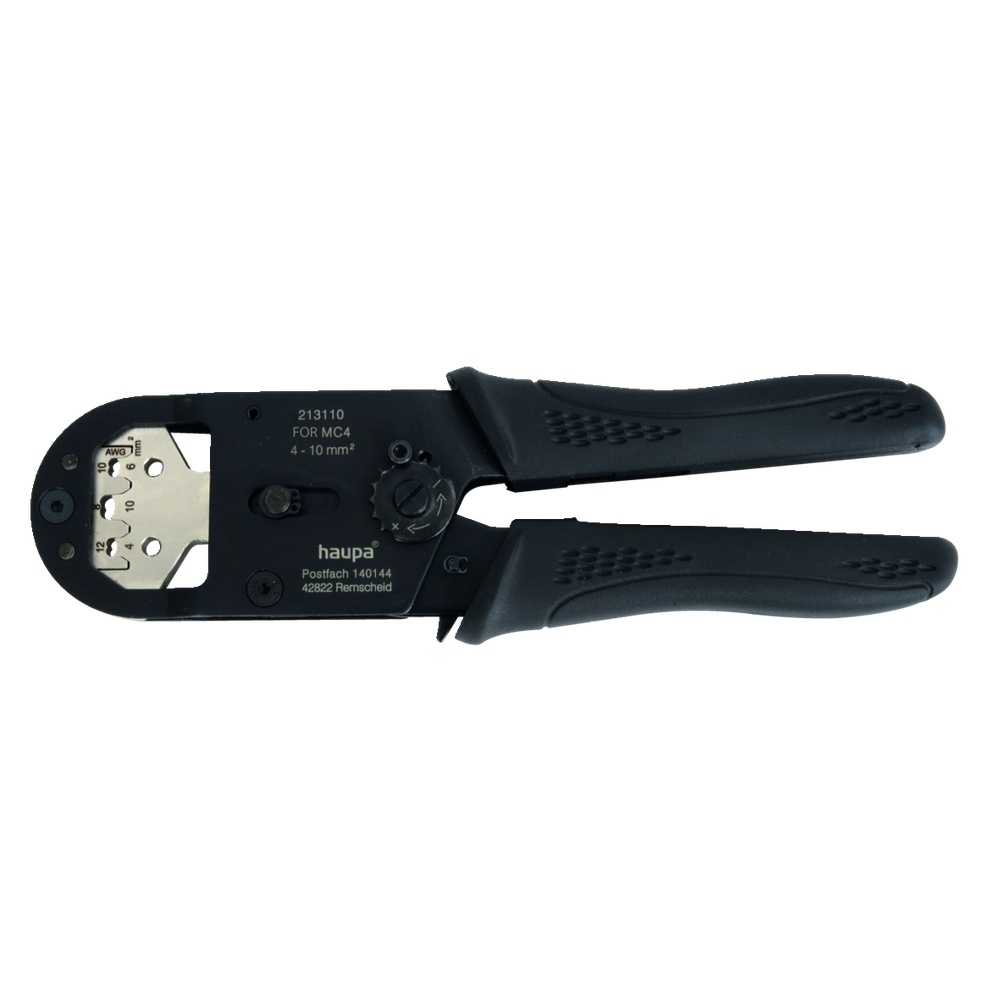 Haupa Stecker 213110 HUPcompact „HC06“ für MC4 Stecker Werkzeugrahmen aus gehärtetem Stahl, Crimpsegmente aus hochwertigem Kohlenstoffstahl erodiert, wärmebehandelt, poliert und vernickelt leichtes erreichen von hohen Crimpkräften leichte Ein-Hand Bedienung mit entriegelbarer Zwangssperre 100%iger Parallel-Vorschub Präzisions-Crimp Presskraft: 5 kN kleine kompakte Bauform Lebensdauer: 50.000 Verpressungen Rollpressung (MC4) 4/6/10 mm² Hersteller Haupa Nr. 213110 EAN Nr. 4011923629120 Warengruppe Haupa Verbrauchsmaterial
