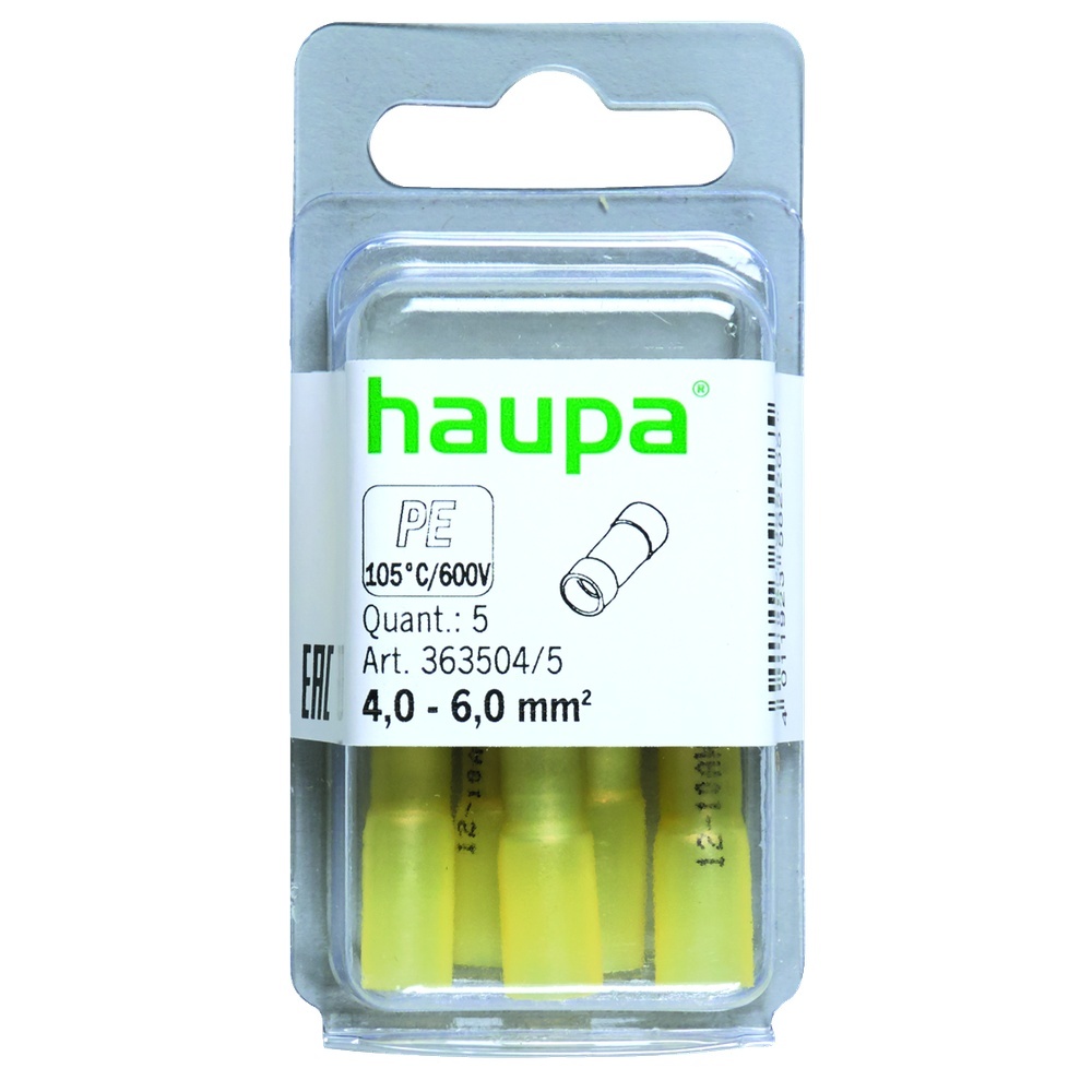 Haupa Stoßverbinder 363504/5 Stoßverbinder „SmallPack“ Kupfer, verzinnt Isolierhülle: Polyolefin mit Innenkleber RoHS-konform Hersteller Haupa Nr. 363504/5 EAN Nr. 4011923582265 Warengruppe Haupa Verbrauchsmaterial