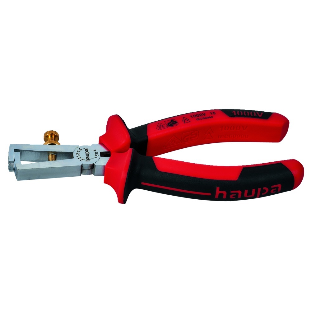 Haupa VDE Abisolierzange 211214 VDE Abisolierzange 160mm C 45, ölgehärtet, mit Feder und Stellschraube für Drähte von 0,2 6 mm Durchmesser, verchromt, gesteckte Hüllen Abisolierzange DIN 5232 VDE EAN Nr. 4011923150464 Warengruppe Haupa Zangen