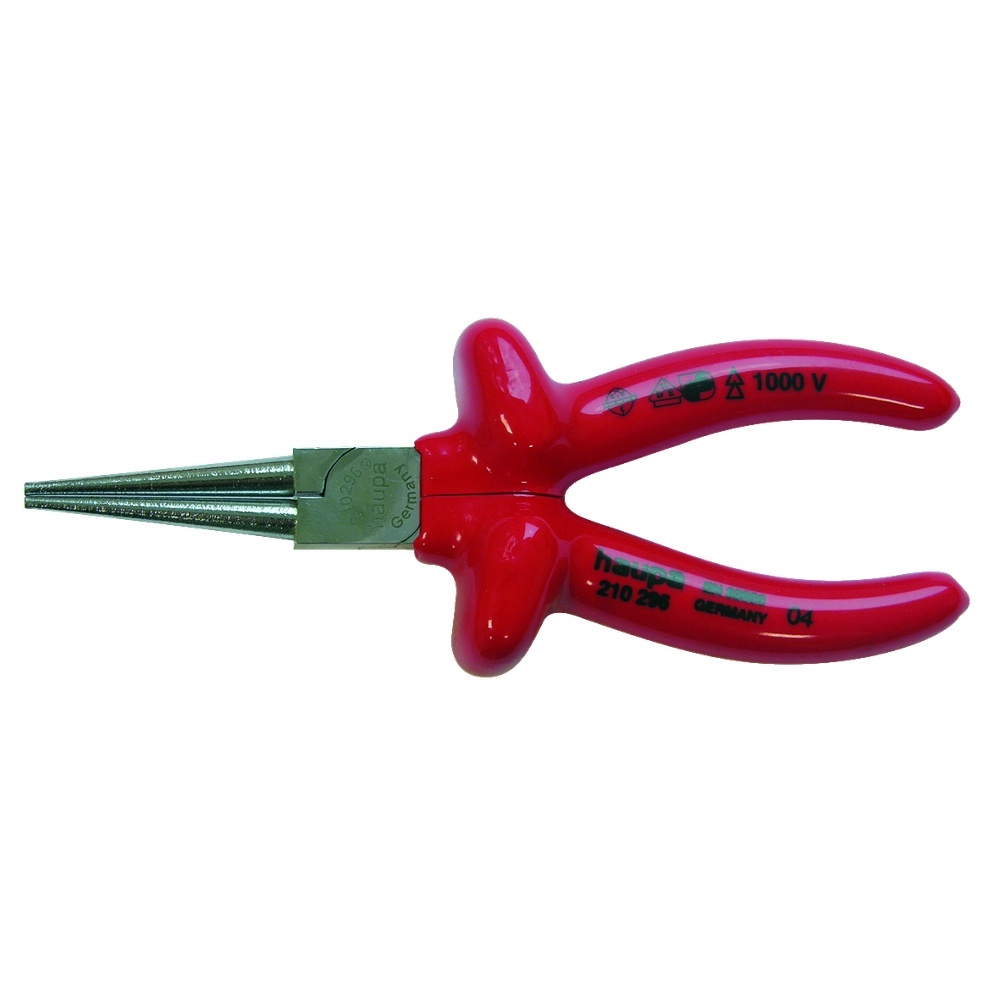 Haupa VDE Rundzange 210296 VDE Rundzange 160 mm C 45, ölgehärtet, kurze Backen, verchromt, 2 Farb Tauchisolation außen rot/innen gelb Rundzange DIN 5257 VDE EAN Nr. 4011923020682 Warengruppe Haupa Zangen