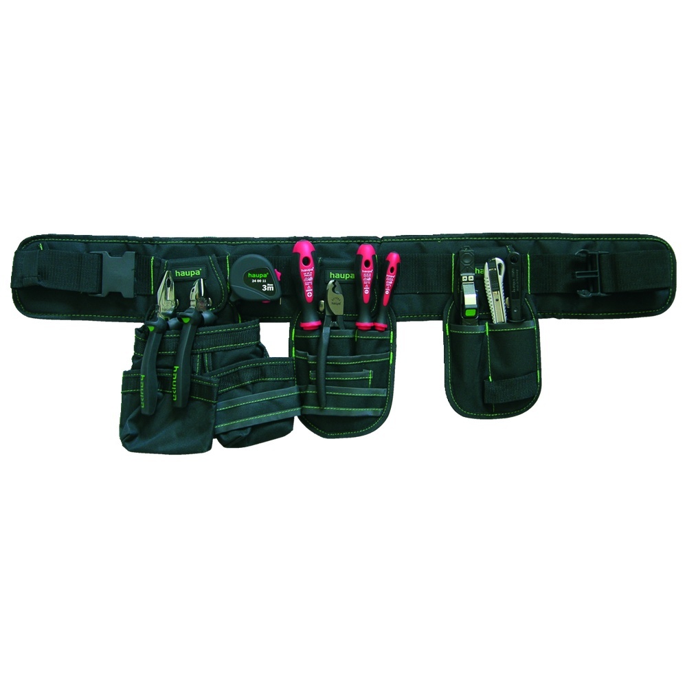 Haupa Werkzeuggürtel 220280 Werkzeuggürtel Basic 10 Taschen zur Organisation Ihrer Werkzeuge, Hammerschlaufe und Bandhalter zur leichten Gürtelmontage, Material: extra starkes 600D Polyester, Farbe: schwarz/grün. Werkzeuggürtel „Basic“ Inhalt: 2K VDE Elektriker Schraubendreher 5,5x125 mm 2K VDE Elektriker Schraubendreher 3x100 mm 2K VDE Schraubendreher PH 2 2K Kombizange 180 mm 2K Seitenschneider 160 mm VDE/GS Spannungsprüfer 125 250 V Leichtes Universal Cuttermesser Abmantler Hakenklinge 8 28 mm Kabelschneider mit Abisolierfunktion Maßband 3 m EAN Nr. 4011923503932 Warengruppe Haupa Koffer u. Sortimentskästen