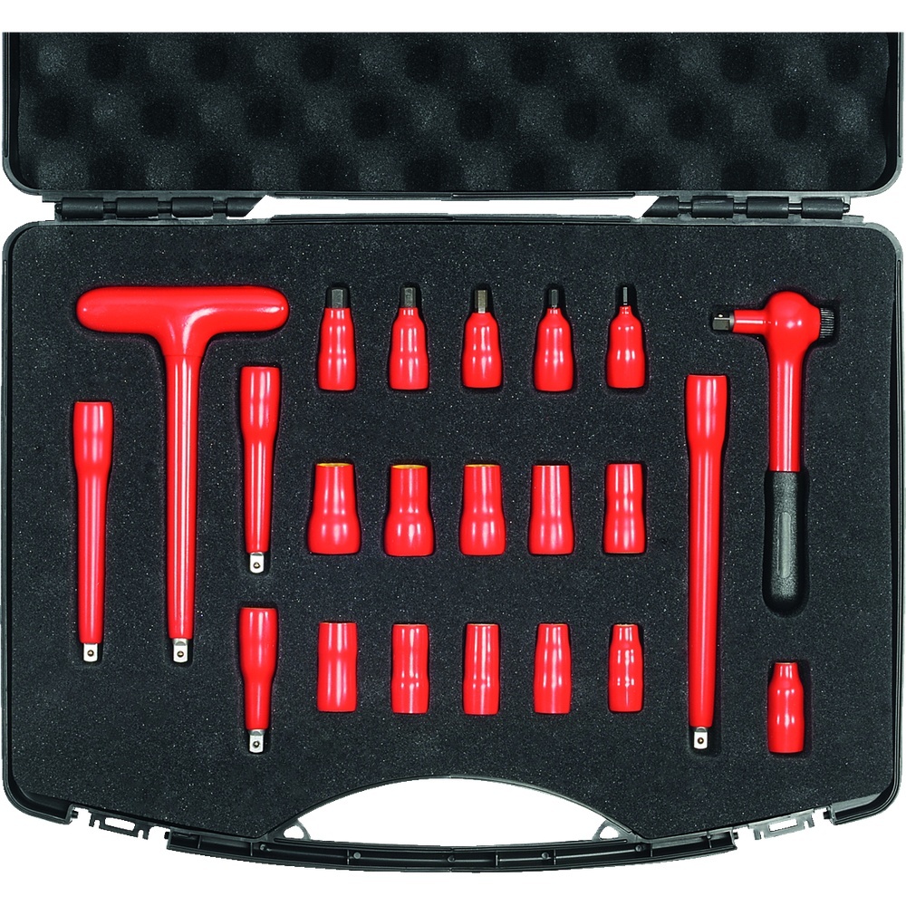 Haupa Werkzeugkoffer 110871 Werkzeugkoffer 1/4 22 tlg 1000V Kunststoffkoffer mit Schaumstoffeinlage, mit 1/4“ Einsteckwerkzeugen. Maße: 450x340x100 mm. # Werkzeugkoffer 1000 V Inhalt: 1 Knarre 1/4 1 Bithalter 1/4 1 T Aufsteck 1/4 4 Verlängerungen 1/4 10 Einsätze 1/4 , 5, 6, 7, 8, 9, 10, 11, 12, 13, 14 5 Innensechskant Einsätze 1/4 3, 4, 5, 6, 8 # EAN Nr. 4011923570538 Warengruppe Haupa Knarren u. Einsätze