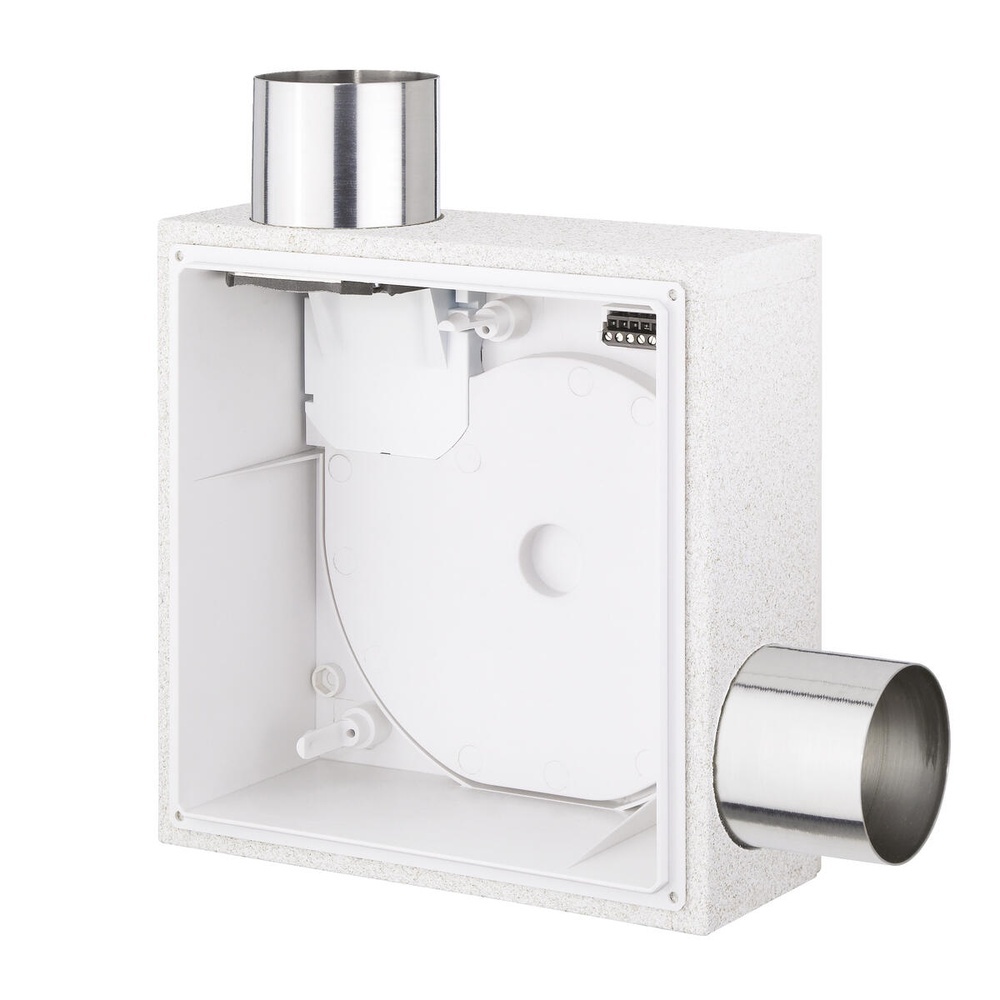 Helios Unterputzgehäuse 08117 Typ ELS-GUBZR ELS-GUBZR, UP-Gehäuse mit Brandschutzklappe u. -ummantelung K90, Zweitraumanschluss rechts Unterputzgehäuse mit Brandschutz-Ummantelung K 90 und Zweitraumanschluss rechts. Ausblasstutzen für Hauptraum seitlich, nach oben (Lieferweise), links oder rechts drehbar. Metall-Ausblasstutzen mit selbsttätiger Rückschlagklappe und Absperrung bei Schmelzlotauslösung.* Steckverbindung für elektrischen Anschluss herausnehmbar. Wieder einsetzbarer Klapp-Putzdeckel. Anschluss DN 80 mm. Einsatzgebiet Zweiraumlüftung von Bad und WC. Einbau in Wand, Decke und K 90 qualifizierte Lüftungsschächte. Anschluss von 1 oder 2 Gehäusen pro Etage bis zu 20 Vollgeschossen möglich. Ventilator-Einsatz mit 100 m3/h empfohlen. *Die Rückschlagklappe bei Brandschutzgehäusen erfüllt grundsätzlich auch die Anforderungen einer Kaltrauch-Absperrklappe. Hersteller Helios Typ ELS-GUBZR Nr. 08117 EAN Nr. 4010184081173 Warengruppe Helios Zubehör