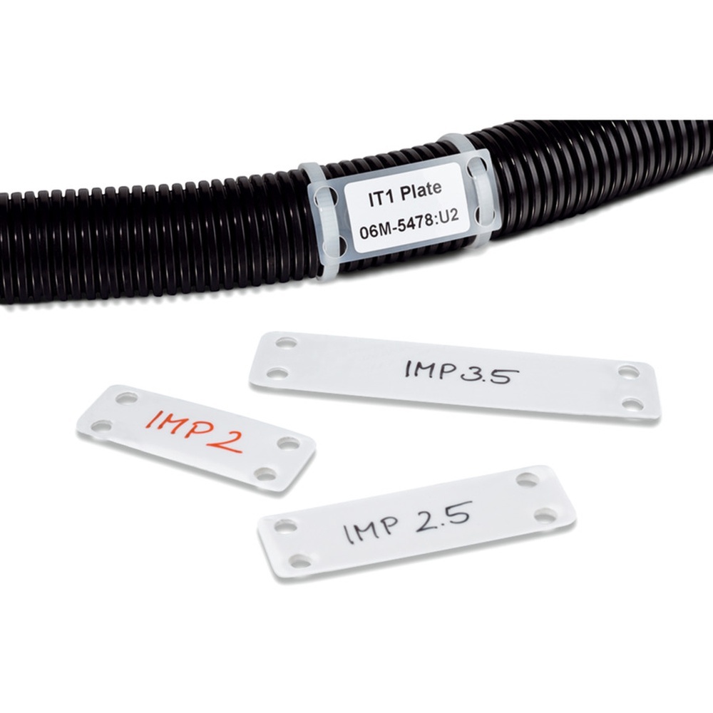 Hellermann Kennzeichnungsschild 151-42159 Typ IMP1.5 PA66 WH 100 Kennzeichnungsschild 38,1x19,05 mm natur IT- und IMP-Plättchen zur Kennzeichnung von Kabeln und Rohren mit großen Durchmessern Auch für die Kennzeichnung von ebenen Oberflächen Beschriftung mit bedruckbaren Etiketten oder mit Markierstiften der Serie T82 Befestigung mit Kabelbindern oder Nieten Individuell bedruckte Plättchen auf Anfrage erhältlich Die IT- und IMP-Plättchen eignen sich für die Kennzeichnung von Kabelbäumen, Leitungsbündeln und anderen Objekten vor und nach der Montage. Mit Kabelbindern in beliebigen Längen Breite bis 4,8 mm kann eine Befestigung am Bündelgut erfolgen. Alternativ ist eine Fixierung mit Nieten möglich. Die Plättchen können manuell mit den Markierstiften der Reihe T82 beschriftet oder mit passenden Etiketten versehen werden. Hersteller Hellermann Verbindungstechnik Typ IMP15PA66WH100 EAN Nr. 4031026122922 Warengruppe Hellermann Kennzeichnungen