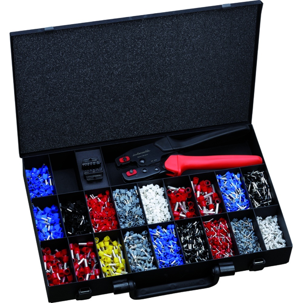 Intercable Sortimentskasten 181437 Typ MPUSETIAE Metallkoffer schwarz, 22 Fächer, bestückt mit Basiswerkzeug MPU, Aderendhülsen isoliert DIN 46228 Teil 4 von 0,5-10qmm, Zwillingsaderendhülsen isoliert von 0,5-2,5qmm Hersteller Intercable Tools Nr. 181437 Typ MPUSETIAE EAN Nr. 8014212197382