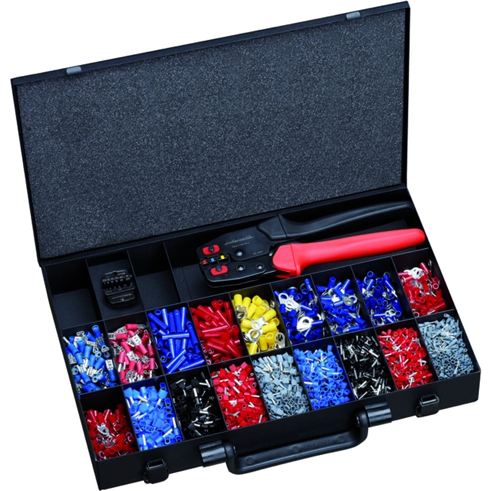 Intercable Sortimentskasten 181438 Typ MPUSETIAEIQ Metallkoffer schwarz, 22 Fächer, bestückt mit Basiswerkzeug MPU, Aderendhülsen isoliert DIN 46228 Teil 4 von 0,75-2,5qmm, Zwillingsaderendhülsen isoliert von 1,0-2,5qmm, Quetschkabelschuhn isoliert Ringform DIN 46237 von 1,0-6,0qmm, Stossverbindern isoliert 1,0-2,5qmm, Flachsteckhülsen isoliert 1,0-2,5qmm Hersteller Intercable Tools Nr. 181438 Typ MPUSETIAEIQ EAN Nr. 8014212197399