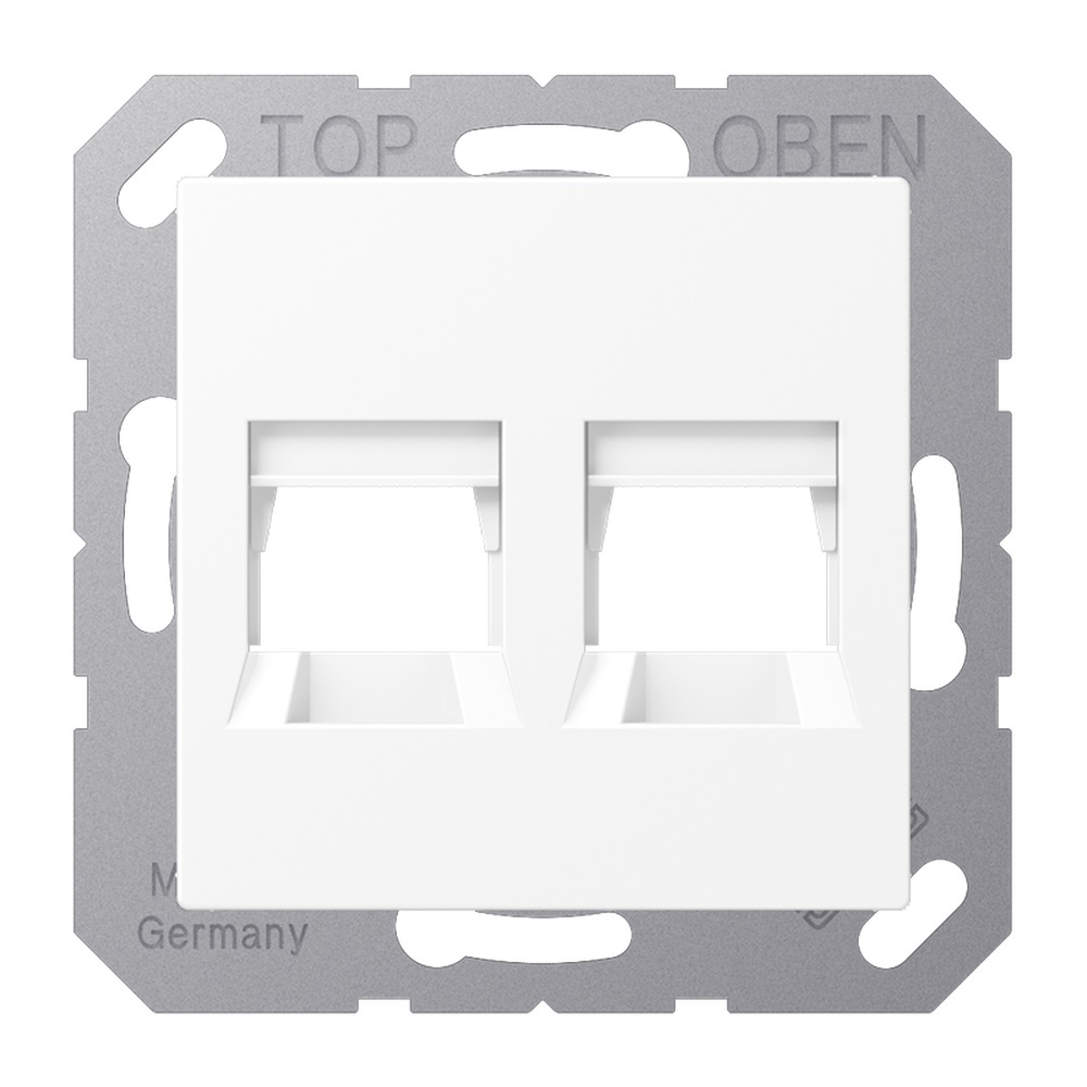 Jung Abdeckung Steckbuchse A1569-25WEWWM Abdeckung für Modular-Jack-Steckbuchsen, Serie AS/A, schneeweiß matt (kpl. mit Tragring, Schraubbefestigung) für Kabel Ø max. 6,1 mm Verschlussklappe mit Rückstellfeder für 2 Steckbuchsen (passend nur in eckige Kanaldosen) für Modular-Jack-Steckbuchsen TE connectivity (Tyco electronics/AMP NETCONNECT) für Kabel Ø max. 10 mm EMT Cat. 5e, 180 Grad Art-Nr. 0-0188650-5 EMT Cat. 5e, 90 Grad Art-Nr. 0-0188650-6 für Kabel Ø max. 6,5 mm EMT Cat. 5e, 180 Grad Art-Nr. 0-0338038-1 EMT Cat. 5e, 90 Grad Art-Nr. 0-0338038-2 Toolless Jack Cat. 3 ungeschirmt Art-Nr. 0-1116603-x Toolless Jack Cat. 5e ungeschirmt Art-Nr. 0-1116604-x, Toolless Jack Cat. 5e geschirmt Art-Nr. 0-1339015-1 Toolless Jack Cat. 6 ungeschirmt Art-Nr. 0-1116605-x, Toolless Jack Cat. 6 geschirmt Art-Nr. 0-1339016-1 MTRJ-LWL-Jack (Lichtwellenleiter) Art-Nr. 1278414-1, tiefe Schalterdose erforderlich Hersteller Albrecht Jung GmbH & Co. KG EAN Nr. 4011377189249 Warengruppe Jung Serie AS