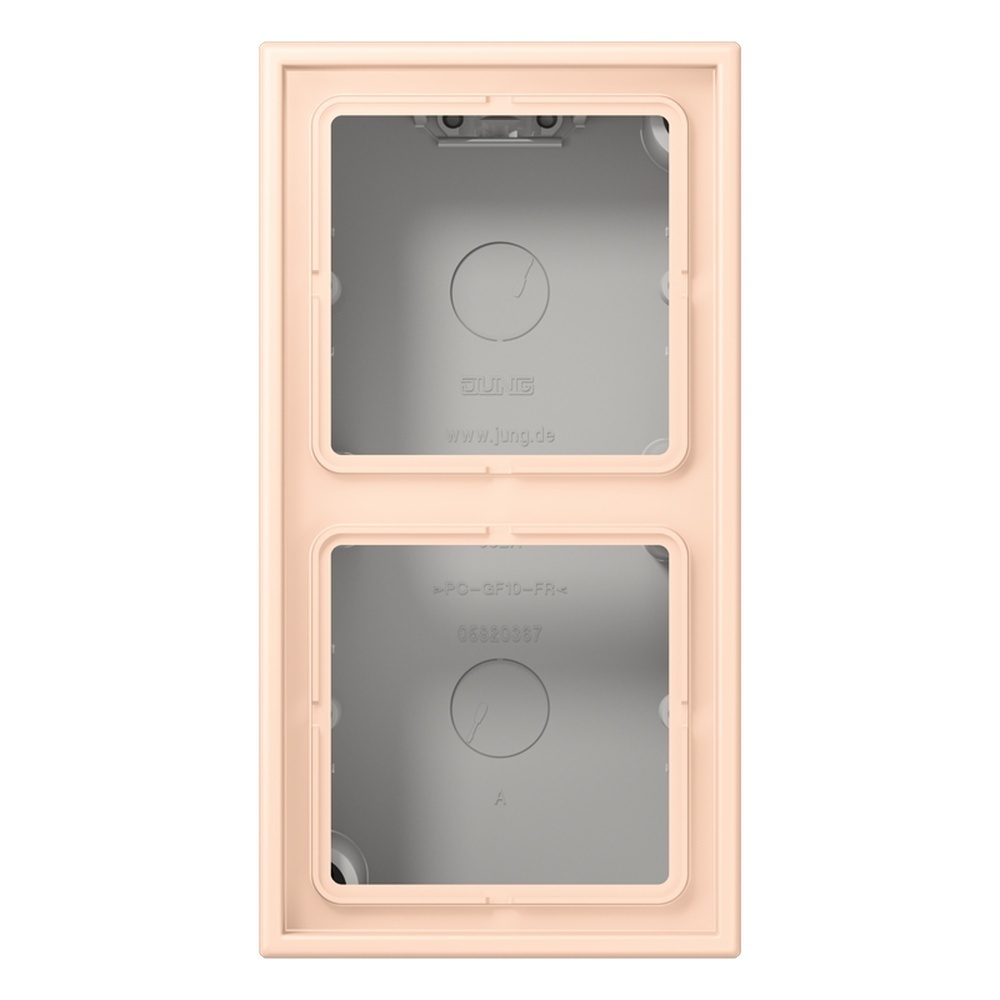 Jung Aufputz Kappe LC582A228 Aufputz-Kappe 2fach, Duroplast lackiert, Serie LS, rose pâle (32091) mit integrierter flammwidriger Bodenplatte und integriertem Rahmenfür UP-Geräte mit Abdeckungen aus der Serie LS (außer Kippschalter LS 1912, Schlüsselschalter mit zylinderbündiger Abdeckung Art.-Nrn.: .15, Stufenschalter und SEV-Steckdosen Typ 13)152 x 81 x 47 mmEinbautiefe max. 34 mm Hersteller Jung Nr. LC582A228 EAN Nr. 4011377346604 Warengruppe Jung Aufputz LS