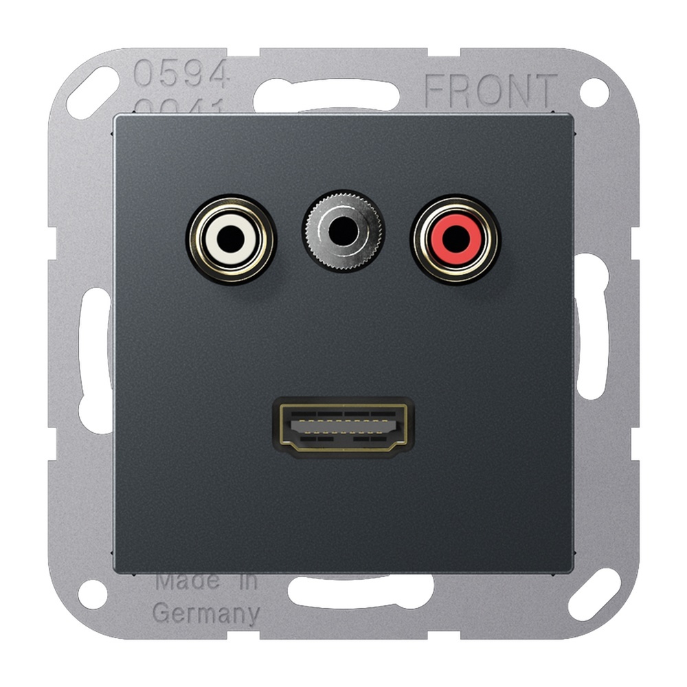 Jung Cinch Audio Miniklinke MA A 1082 ANM Cinch Audio, Miniklinke 3,5 mm und HDMI, für die Serie A, mit Tragring, Schraubbefestigung, bruchsicher, Technische Daten Cinch Audio Nennspannung DC 50 V, Frequenzbereich 20 Hz bis 20 KHz, Kontaktwiderstand 20 m, Isolationswiderstand 100 M, Spannungsfestigkeit AC 500 V ~ 50/60 Hz bei 1 min 2 mA, Steck- und Abziehkräfte 3 bis 25 N, Steckzyklen 1000, Durchgangsbuchse weiß links, rot rechts, Kontaktmaterial vergoldet, Umgebungstemperatur – 5 bis + 45 GradC, Technische Daten Miniklinke 3,5 mm Nennspannung DC 50 V, Frequenzbereich 20 Hz bis 20 KHz, Kontaktwiderstand 20 m, Isolationswiderstand 100 M, Spannungsfestigkeit AC 500 bis 2000 V ~, DC 800 V, Steck- und Abziehkräfte 4,9 bis 14,7 N, Steckzyklen 2000, Durchgangsbuchse 3,5 mm, Audio Stereo, 180 Grad, Kontaktmaterial vergoldet, Umgebungstemperatur – 5 bis + 45 GradC, Technische Daten HDMI Standard 1.3, Category 2, Unterstützung der HDMI™-Technologie V 1.3 mit Deep Color, Video Bandbreite 1,65 GHz, Auflösung 1080 p 1280x1024 Pixel, Frequenzbereich vertikal 50 bis 85 Hz, Übertragungsrate 10,2 GBit/s, Durchgangsbuchse HDMI™, Typ A, 180 Grad, Kontaktmaterial vergoldet, Umgebungstemperatur – 5 bis + 45 GradC Hersteller Albrecht Jung GmbH & Co. KG Typ MAA1082ANM EAN Nr. 4011377132214 Warengruppe Jung Technik