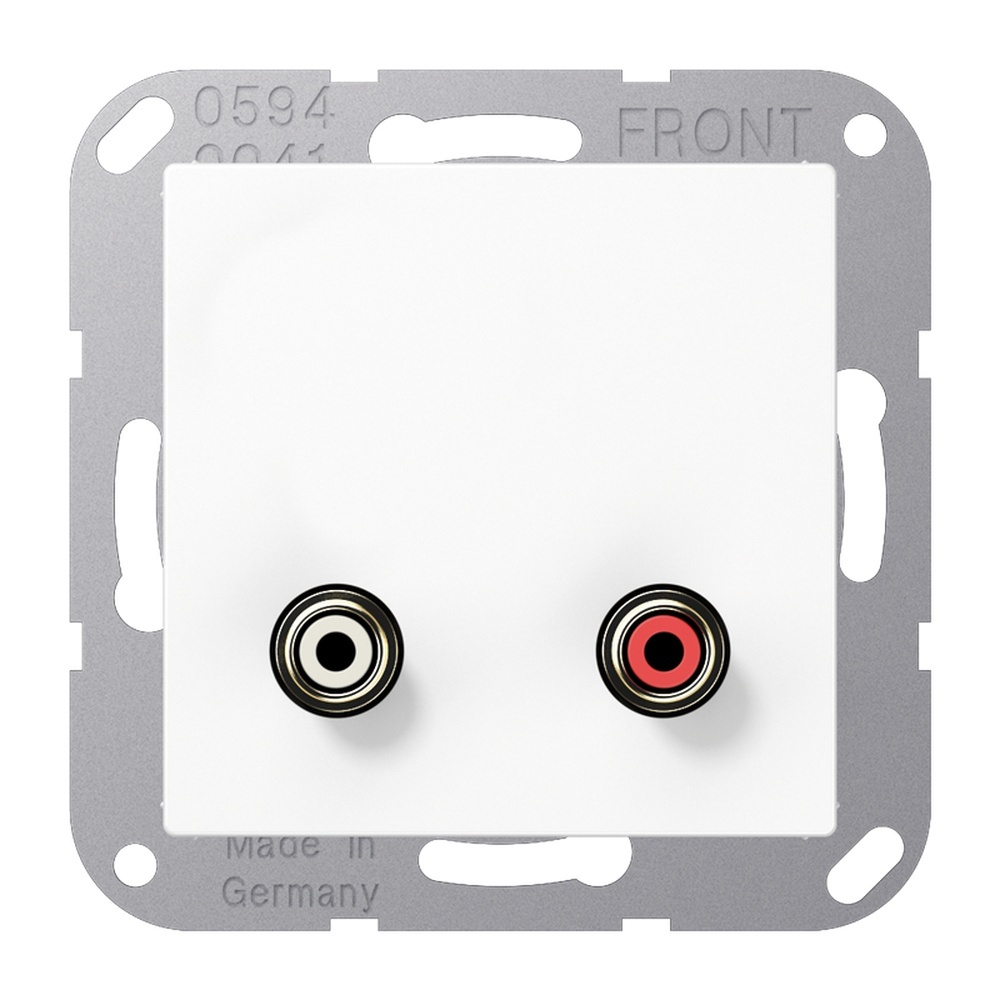 Jung Cinch Audio Tragring MA A 1021 WW Cinch Audio, für die Serien AS und A, mit Tragring, Schraubbefestigung, bruchsicher, Technische Daten Cinch Audio Nennspannung DC 50 V, Frequenzbereich 20 Hz bis 20 KHz, Kontaktwiderstand 20 m, Isolationswiderstand 100 M, Spannungsfestigkeit AC 500 V ~ 50/60 Hz bei 1 min 2 mA, Steck- und Abziehkräfte 3 bis 25 N, Steckzyklen 1000, Durchgangsbuchse weiß links, rot rechts, Kontaktmaterial vergoldet, Umgebungstemperatur – 5 bis + 45 GradC Hersteller Albrecht Jung GmbH & Co. KG Typ MAA1021WW EAN Nr. 4011377070295 Warengruppe Jung Technik