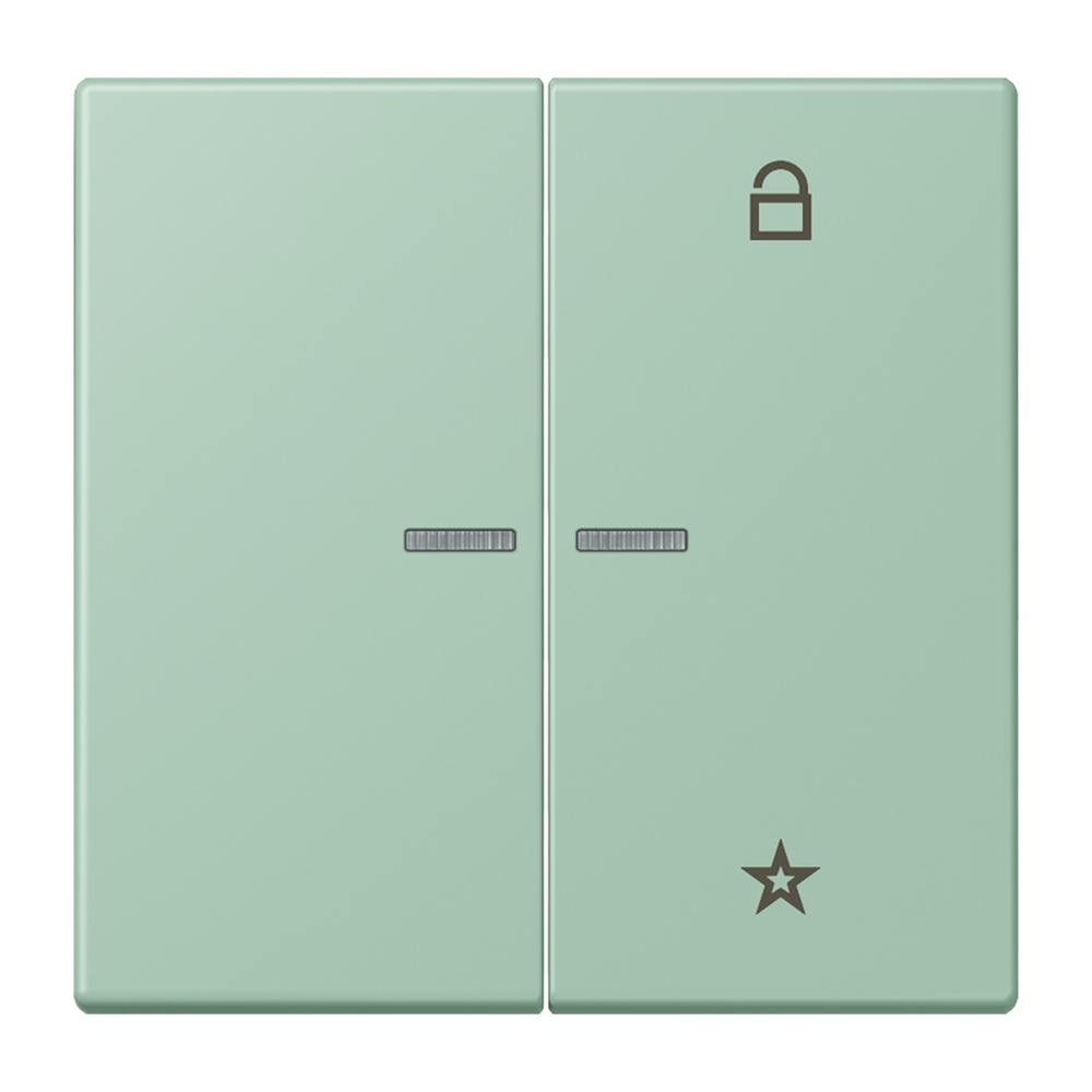 Jung eNet Taster Universal 1fach FMLC1701217 eNet Taster Universal 1fach, Duroplast, Serie LS, vert anglais clair (32041) für Einsätze Jalousie Art.-Nrn.: 1730 JE und 1731 JE für Einsätze Licht Art.-Nrn.: 1701 SE, 1701 PSE, 1702 SE, 1704 ESE, 1710 DE, 1711 DE, 1713 DSTE, 1723 NE Bestimmungsgemäßer Gebrauch Manuelles, funk- und zeitgesteuertes Bedienen von z.B. Jalousien, Rollläden, Markisen, Beleuchtung oder Lüftern Sender zur Funkübertragung von Schalt-, Dimm- und Jalousiebefehlen Betrieb mit Systemeinsatz zum Schalten, Dimmen, Jalousie oder Nebenstelle 3-Draht Produkteigenschaften 2 Schaltzeiten speicherbar, die im 24-Stunden-Rhythmus wiederholt werden Sperrfunktion Statusrückmeldung an Funksender Statusanzeige mit LED Nachtmodus Auswertung der Nebenstelleneingänge (wenn vorhanden) zur Steuerung des Systemeinsatzes Funktionen in Kombination mit Jalousieeinsatz Positionierung von Behängen über Szenenaufruf Position für Sonnenschutz und Dämmerung Laufzeit und Lüftungsposition des Behanges speicherbar Funktionen in Kombination mit Lichteinsatz Szenenbetrieb möglich Einschalthelligkeit dauerhaft speicherbar bei Kombination mit UP-Einsätzen zum Dimmen Funktionen in Kombination mit Schalteinsatz Relais, 2-kanalig Ausgang a2 schaltet abhängig von Ausgang a1 z.B. um eine Lüftung in Abhängigkeit der Beleuchtung einzuschalten und mit Verzögerung auszuschalten. Einschaltverzögerung für Ausgang a2 einstellbar Ausschaltverzögerung für Ausgang a2 einstellbar   Mit eNet-Server ab Version 2.2 einstellbar (abhängig vom Einsatz): Repeaterfunktion Lamellenumsteuerzeit/Tuchstraffzeit Umsteuerzeit bei Richtungswechsel Laufrichtung invertierbar Bediensperren Nebenstellenauswertung deaktivieren Position für Sonnenschutz, Dämmerung, Aussperrschutz und Windalarm Maximalhelligkeit Minimalhelligkeit Dimmgeschwindigkeit Ein-/ Ausschaltverzögerung Auf-/ Abdimmrampe Abschaltwarnung Dauer-Ein, Dauer-Aus Hotelfunktion Nachlaufzeit Lichtregelung Zusatzfunktionen mit eNet-Server: Vollverschlüsselte Funkübertragung (AES-CCM) Update der Gerätesoftware Fehlerspeicher auslesen Hersteller Jung EAN Nr. 4011377274778 Warengruppe Jung Les Couleurs Le Corbusier