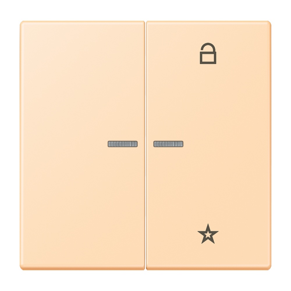 Jung eNet Taster Universal 1fach FMLC1701223 eNet Taster Universal 1fach, Duroplast, Serie LS, ocre (32060) für Einsätze Jalousie Art.-Nrn.: 1730 JE und 1731 JE für Einsätze Licht Art.-Nrn.: 1701 SE, 1701 PSE, 1702 SE, 1704 ESE, 1710 DE, 1711 DE, 1713 DSTE, 1723 NE Bestimmungsgemäßer Gebrauch Manuelles, funk- und zeitgesteuertes Bedienen von z.B. Jalousien, Rollläden, Markisen, Beleuchtung oder Lüftern Sender zur Funkübertragung von Schalt-, Dimm- und Jalousiebefehlen Betrieb mit Systemeinsatz zum Schalten, Dimmen, Jalousie oder Nebenstelle 3-Draht Produkteigenschaften 2 Schaltzeiten speicherbar, die im 24-Stunden-Rhythmus wiederholt werden Sperrfunktion Statusrückmeldung an Funksender Statusanzeige mit LED Nachtmodus Auswertung der Nebenstelleneingänge (wenn vorhanden) zur Steuerung des Systemeinsatzes Funktionen in Kombination mit Jalousieeinsatz Positionierung von Behängen über Szenenaufruf Position für Sonnenschutz und Dämmerung Laufzeit und Lüftungsposition des Behanges speicherbar Funktionen in Kombination mit Lichteinsatz Szenenbetrieb möglich Einschalthelligkeit dauerhaft speicherbar bei Kombination mit UP-Einsätzen zum Dimmen Funktionen in Kombination mit Schalteinsatz Relais, 2-kanalig Ausgang a2 schaltet abhängig von Ausgang a1 z.B. um eine Lüftung in Abhängigkeit der Beleuchtung einzuschalten und mit Verzögerung auszuschalten. Einschaltverzögerung für Ausgang a2 einstellbar Ausschaltverzögerung für Ausgang a2 einstellbar Mit eNet-Server ab Version 2.2 einstellbar (abhängig vom Einsatz): Repeaterfunktion Lamellenumsteuerzeit/Tuchstraffzeit Umsteuerzeit bei Richtungswechsel Laufrichtung invertierbar Bediensperren Nebenstellenauswertung deaktivieren Position für Sonnenschutz, Dämmerung, Aussperrschutz und Windalarm Maximalhelligkeit Minimalhelligkeit Dimmgeschwindigkeit Ein-/ Ausschaltverzögerung Auf-/ Abdimmrampe Abschaltwarnung Dauer-Ein, Dauer-Aus Hotelfunktion Nachlaufzeit Lichtregelung Zusatzfunktionen mit eNet-Server: Vollverschlüsselte Funkübertragung (AES-CCM) Update der Gerätesoftware Fehlerspeicher auslesen Hersteller Jung EAN Nr. 4011377274846 Warengruppe Jung Les Couleurs Le Corbusier