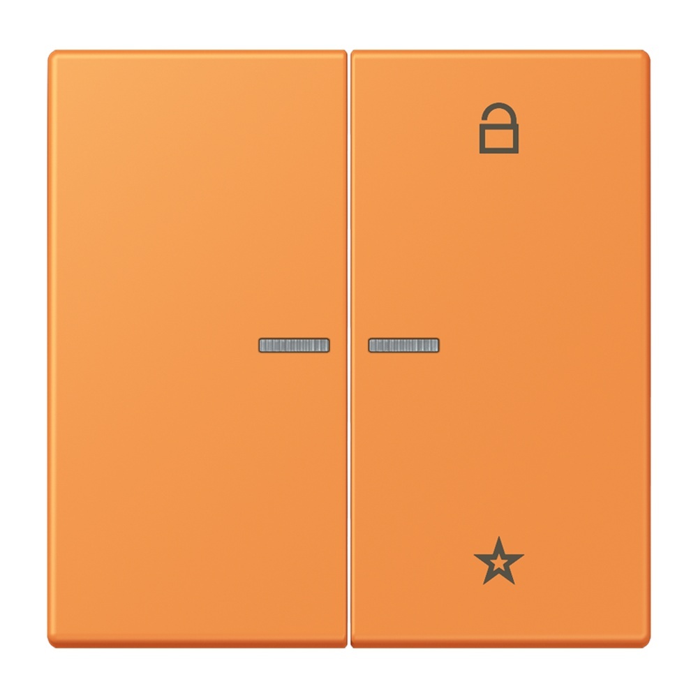 Jung eNet Taster Universal 1fach FMLC1701225 eNet Taster Universal 1fach, Duroplast, Serie LS, orange clair (32081) für Einsätze Jalousie Art.-Nrn.: 1730 JE und 1731 JE für Einsätze Licht Art.-Nrn.: 1701 SE, 1701 PSE, 1702 SE, 1704 ESE, 1710 DE, 1711 DE, 1713 DSTE, 1723 NE Bestimmungsgemäßer Gebrauch Manuelles, funk- und zeitgesteuertes Bedienen von z.B. Jalousien, Rollläden, Markisen, Beleuchtung oder Lüftern Sender zur Funkübertragung von Schalt-, Dimm- und Jalousiebefehlen Betrieb mit Systemeinsatz zum Schalten, Dimmen, Jalousie oder Nebenstelle 3-Draht Produkteigenschaften 2 Schaltzeiten speicherbar, die im 24-Stunden-Rhythmus wiederholt werden Sperrfunktion Statusrückmeldung an Funksender Statusanzeige mit LED Nachtmodus Auswertung der Nebenstelleneingänge (wenn vorhanden) zur Steuerung des Systemeinsatzes Funktionen in Kombination mit Jalousieeinsatz Positionierung von Behängen über Szenenaufruf Position für Sonnenschutz und Dämmerung Laufzeit und Lüftungsposition des Behanges speicherbar Funktionen in Kombination mit Lichteinsatz Szenenbetrieb möglich Einschalthelligkeit dauerhaft speicherbar bei Kombination mit UP-Einsätzen zum Dimmen Funktionen in Kombination mit Schalteinsatz Relais, 2-kanalig Ausgang a2 schaltet abhängig von Ausgang a1 z.B. um eine Lüftung in Abhängigkeit der Beleuchtung einzuschalten und mit Verzögerung auszuschalten. Einschaltverzögerung für Ausgang a2 einstellbar Ausschaltverzögerung für Ausgang a2 einstellbar   Mit eNet-Server ab Version 2.2 einstellbar (abhängig vom Einsatz): Repeaterfunktion Lamellenumsteuerzeit/Tuchstraffzeit Umsteuerzeit bei Richtungswechsel Laufrichtung invertierbar Bediensperren Nebenstellenauswertung deaktivieren Position für Sonnenschutz, Dämmerung, Aussperrschutz und Windalarm Maximalhelligkeit Minimalhelligkeit Dimmgeschwindigkeit Ein-/ Ausschaltverzögerung Auf-/ Abdimmrampe Abschaltwarnung Dauer-Ein, Dauer-Aus Hotelfunktion Nachlaufzeit Lichtregelung Zusatzfunktionen mit eNet-Server: Vollverschlüsselte Funkübertragung (AES-CCM) Update der Gerätesoftware Fehlerspeicher auslesen Hersteller Jung EAN Nr. 4011377274860 Warengruppe Jung Les Couleurs Le Corbusier