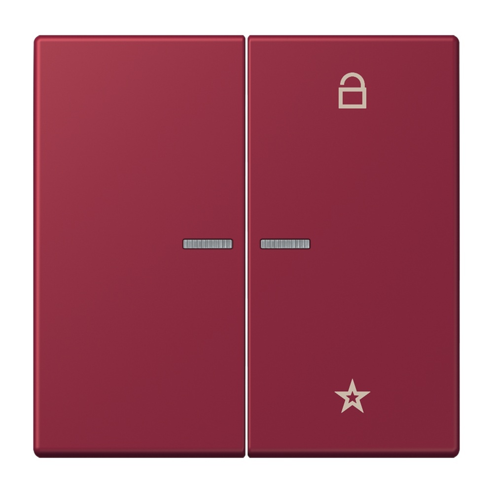 Jung eNet Taster Universal 1fach FMLC1701255 eNet Taster Universal 1fach, Duroplast, Serie LS, le rubis (4320M) für Einsätze Jalousie Art.-Nrn.: 1730 JE und 1731 JE für Einsätze Licht Art.-Nrn.: 1701 SE, 1701 PSE, 1702 SE, 1704 ESE, 1710 DE, 1711 DE, 1713 DSTE, 1723 NE Bestimmungsgemäßer Gebrauch Manuelles, funk- und zeitgesteuertes Bedienen von z.B. Jalousien, Rollläden, Markisen, Beleuchtung oder Lüftern Sender zur Funkübertragung von Schalt-, Dimm- und Jalousiebefehlen Betrieb mit Systemeinsatz zum Schalten, Dimmen, Jalousie oder Nebenstelle 3-Draht Produkteigenschaften 2 Schaltzeiten speicherbar, die im 24-Stunden-Rhythmus wiederholt werden Sperrfunktion Statusrückmeldung an Funksender Statusanzeige mit LED Nachtmodus Auswertung der Nebenstelleneingänge (wenn vorhanden) zur Steuerung des Systemeinsatzes Funktionen in Kombination mit Jalousieeinsatz Positionierung von Behängen über Szenenaufruf Position für Sonnenschutz und Dämmerung Laufzeit und Lüftungsposition des Behanges speicherbar Funktionen in Kombination mit Lichteinsatz Szenenbetrieb möglich Einschalthelligkeit dauerhaft speicherbar bei Kombination mit UP-Einsätzen zum Dimmen Funktionen in Kombination mit Schalteinsatz Relais, 2-kanalig Ausgang a2 schaltet abhängig von Ausgang a1 z.B. um eine Lüftung in Abhängigkeit der Beleuchtung einzuschalten und mit Verzögerung auszuschalten. Einschaltverzögerung für Ausgang a2 einstellbar Ausschaltverzögerung für Ausgang a2 einstellbar   Mit eNet-Server ab Version 2.2 einstellbar (abhängig vom Einsatz): Repeaterfunktion Lamellenumsteuerzeit/Tuchstraffzeit Umsteuerzeit bei Richtungswechsel Laufrichtung invertierbar Bediensperren Nebenstellenauswertung deaktivieren Position für Sonnenschutz, Dämmerung, Aussperrschutz und Windalarm Maximalhelligkeit Minimalhelligkeit Dimmgeschwindigkeit Ein-/ Ausschaltverzögerung Auf-/ Abdimmrampe Abschaltwarnung Dauer-Ein, Dauer-Aus Hotelfunktion Nachlaufzeit Lichtregelung Zusatzfunktionen mit eNet-Server: Vollverschlüsselte Funkübertragung (AES-CCM) Update der Gerätesoftware Fehlerspeicher auslesen Hersteller Jung EAN Nr. 4011377275188 Warengruppe Jung Les Couleurs Le Corbusier