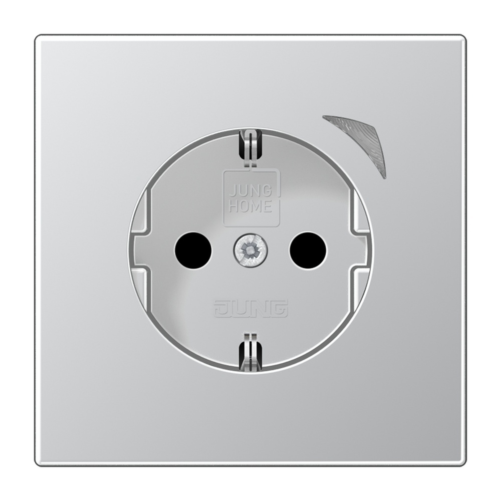 Jung JUNG HOME SCHUKO Steckdose BTAL1521SE-L JUNG HOME SCHUKO Steckdose Energy, 16 A 250 V ~, mit Funktionsanzeige, SAFETY+, Serie LS, Aluminium JUNG HOME SCHUKO Steckdose Energy, Aluminium mit integriertem erhöhten Berührungsschutz (Safety Plus) mit Schraubklemmen für starre und flexible Leiter bis 2,5 mm2 Verbindungsklemmen nach DIN VDE 0620 Tragring, Krallen und Krallenschrauben sind über eine Erdungsschiene in die Schutzmaßnahme eingebunden. Bestimmungsgemäßer Gebrauch Manuelles oder automatisches Schalten von Beleuchtung und haushaltsüblichen Geräten Leistungs- (W) und Energiemessung (kWh) der angeschlossenen Geräte Drahtlose Verknüpfung mit Geräten des JUNG HOME Systems Einsatz im trockenen Innenbereich Montage in Gerätedose mit Abmessungen nach DIN 49073 Tiefe der Gerätedose (Innenmaß): min. 53 mm   Produkteigenschaften Inbetriebnahme und Bedienung über JUNG HOME App mit mobilem Endgerät (Smartphone oder Tablet) über Bluetooth Taste zum Schalten Mehrfarbige Statusanzeige mit optionalem Nachtmodus Sperren der lokalen Bedienung Bis zu 16 Zeitprogramme Einbindung der Last in Bereiche (Gruppen), Zentralfunktionen und Szenen Automatikfunktionen aktivieren/deaktivieren über JUNG HOME App Automatische Datum- und Uhrzeitaktualisierung bei Verbindung mit Smartphone Integrierter Schaltaktor mit 16 A Leistungsmessung von 0,1 bis 3680 Watt und Energiemessung (kWh) Aufzeichnung des Energieverlaufes letzte 24 Stunden und letzte 31 Tage (Charting) Betriebsstundenzähler, Zeitraum der Energiemessung Power-Save-Funktion (Abschalten von Standby-Verbrauchern) Master-Slave-Funktion (abhängig vom angeschlossenen Verbraucher einen drahtlos verknüpften Verbraucher einschalten) Überstrom-Schutzabschaltung Bluetooth SIG Mesh für voll verschlüsselte drahtlose Kommunikation und Repeaterfunktion Updatefähig über JUNG HOME App Zukünftig per Update verfügbar: (Hinweise zu Updates und Terminen finden sie unter jung.group/junghome) Sperr- und Zwangsführung: Dauer-EIN/AUS oder für feste Zeit EIN/AUS Zeitprogramme mit Sonnenauf- bzw. Sonnenuntergang (Astrotimer) Zeitprogramme mit Zufallszeitpunkt Ein-/ Ausschaltverzögerung Eingespeiste Leistung von -0,1 bis -3680 Watt und eingespeiste Energie (kWh) Material: Thermoplast lackiert Maße (BxH): 70 x 70 mm Hersteller Jung EAN Nr. 4011377201552 Warengruppe Jung Serie LS