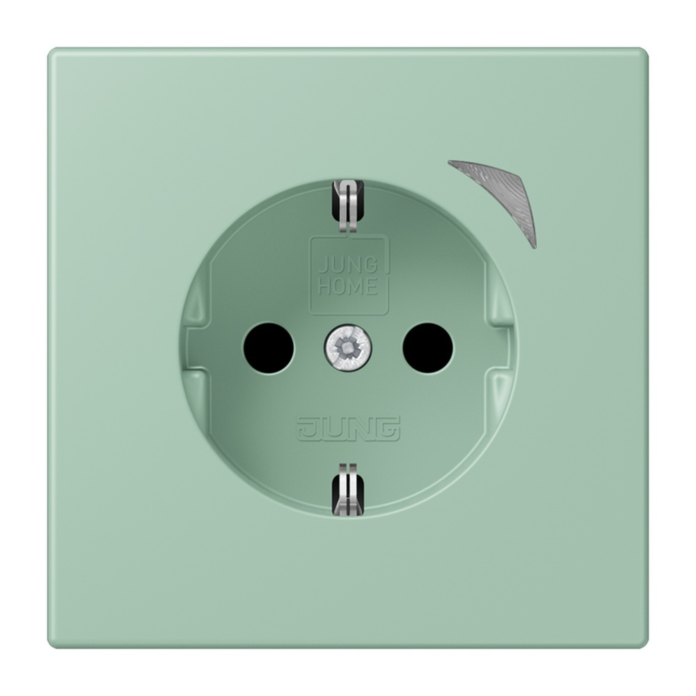 Jung JUNG HOME SCHUKO Steckdose BTLC1521S217 JUNG HOME SCHUKO Steckdose, 16 A 250 V, mit Funktionsanzeige, SAFETY+, Serie LS, vert anglais clair (32041) JUNG HOME SCHUKO Steckdose, vert anglais clair mit integriertem erhöhten Berührungsschutz (Safety Plus) mit Schraubklemmen für starre und flexible Leiter bis 2,5 mm2 Verbindungsklemmen nach DIN VDE 0620 Tragring, Krallen und Krallenschrauben sind über eine Erdungsschiene in die Schutzmaßnahme eingebunden. Bestimmungsgemäßer Gebrauch Manuelles oder automatisches Schalten von Beleuchtung und haushaltsüblichen Geräten Drahtlose Verknüpfung mit Geräten des JUNG HOME Systems Einsatz im trockenen Innenbereich Montage in Gerätedose mit Abmessungen nach DIN 49073 Tiefe der Gerätedose (Innenmaß): min. 53 mm Produkteigenschaften Inbetriebnahme und Bedienung über JUNG HOME App mit mobilem Endgerät (Smartphone oder Tablet) über Bluetooth Taste zum Schalten Mehrfarbige Statusanzeige mit optionalem Nachtmodus Sperren der lokalen Bedienung Bis zu 16 Zeitprogramme Einbindung der Last in Bereiche (Gruppen), Zentralfunktionen und Szenen Automatikfunktionen aktivieren/deaktivieren über JUNG HOME App Automatische Datum- und Uhrzeitaktualisierung bei Verbindung mit Smartphone Integrierter Schaltaktor mit 16 A Bluetooth SIG Mesh für voll verschlüsselte drahtlose Kommunikation und Repeaterfunktion Updatefähig über JUNG HOME App Zukünftig per Update verfügbar: (Hinweise zu Updates und Terminen finden sie unter jung.group/junghome) Sperr- und Zwangsführung: Dauer-EIN/AUS oder für feste Zeit EIN/AUS Zeitprogramme mit Sonnenauf- bzw. Sonnenuntergang (Astrotimer) Zeitprogramme mit Zufallszeitpunkt Ein-/ Ausschaltverzögerung Material: Thermoplast lackiert Maße (BxH): 70 x 70 mm Hersteller Jung EAN Nr. 4011377314436 Warengruppe Jung Les Couleurs Le Corbusier