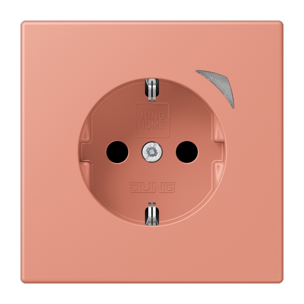 Jung JUNG HOME SCHUKO Steckdose BTLC1521S233 JUNG HOME SCHUKO Steckdose, 16 A 250 V, mit Funktionsanzeige, SAFETY+, Serie LS, l’ocre rouge moyen (32111) JUNG HOME SCHUKO Steckdose, l'ocre rouge moyen mit integriertem erhöhten Berührungsschutz (Safety Plus) mit Schraubklemmen für starre und flexible Leiter bis 2,5 mm2 Verbindungsklemmen nach DIN VDE 0620 Tragring, Krallen und Krallenschrauben sind über eine Erdungsschiene in die Schutzmaßnahme eingebunden. Bestimmungsgemäßer Gebrauch Manuelles oder automatisches Schalten von Beleuchtung und haushaltsüblichen Geräten Drahtlose Verknüpfung mit Geräten des JUNG HOME Systems Einsatz im trockenen Innenbereich Montage in Gerätedose mit Abmessungen nach DIN 49073 Tiefe der Gerätedose (Innenmaß): min. 53 mm   Produkteigenschaften Inbetriebnahme und Bedienung über JUNG HOME App mit mobilem Endgerät (Smartphone oder Tablet) über Bluetooth Taste zum Schalten Mehrfarbige Statusanzeige mit optionalem Nachtmodus Sperren der lokalen Bedienung Bis zu 16 Zeitprogramme Einbindung der Last in Bereiche (Gruppen), Zentralfunktionen und Szenen Automatikfunktionen aktivieren/deaktivieren über JUNG HOME App Automatische Datum- und Uhrzeitaktualisierung bei Verbindung mit Smartphone Integrierter Schaltaktor mit 16 A Bluetooth SIG Mesh für voll verschlüsselte drahtlose Kommunikation und Repeaterfunktion Updatefähig über JUNG HOME App Zukünftig per Update verfügbar: (Hinweise zu Updates und Terminen finden sie unter jung.group/junghome) Sperr- und Zwangsführung: Dauer-EIN/AUS oder für feste Zeit EIN/AUS Zeitprogramme mit Sonnenauf- bzw. Sonnenuntergang (Astrotimer) Zeitprogramme mit Zufallszeitpunkt Ein-/ Ausschaltverzögerung Material: Thermoplast lackiert Maße (BxH): 70 x 70 mm Hersteller Jung EAN Nr. 4011377314603 Warengruppe Jung Les Couleurs Le Corbusier