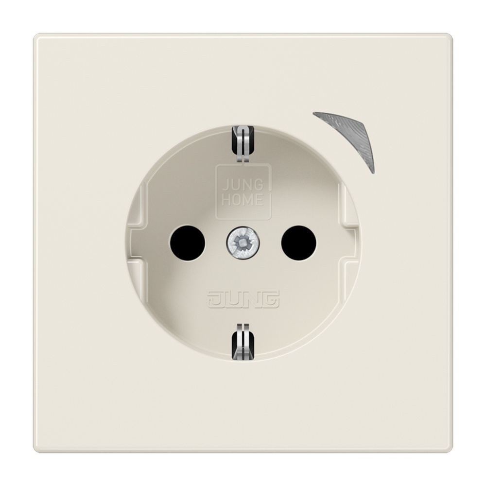 Jung JUNG HOME SCHUKO Steckdose BTLS1521SE JUNG HOME SCHUKO Steckdose Energy, 16 A 250 V ~, mit Funktionsanzeige, SAFETY+, Serie LS, weiß JUNG HOME SCHUKO Steckdose Energy, weiß mit integriertem erhöhten Berührungsschutz (Safety Plus) mit Schraubklemmen für starre und flexible Leiter bis 2,5 mm2 Verbindungsklemmen nach DIN VDE 0620 Tragring, Krallen und Krallenschrauben sind über eine Erdungsschiene in die Schutzmaßnahme eingebunden. Bestimmungsgemäßer Gebrauch Manuelles oder automatisches Schalten von Beleuchtung und haushaltsüblichen Geräten Leistungs- (W) und Energiemessung (kWh) der angeschlossenen Geräte Drahtlose Verknüpfung mit Geräten des JUNG HOME Systems Einsatz im trockenen Innenbereich Montage in Gerätedose mit Abmessungen nach DIN 49073 Tiefe der Gerätedose (Innenmaß): min. 53 mm   Produkteigenschaften Inbetriebnahme und Bedienung über JUNG HOME App mit mobilem Endgerät (Smartphone oder Tablet) über Bluetooth Taste zum Schalten Mehrfarbige Statusanzeige mit optionalem Nachtmodus Sperren der lokalen Bedienung Bis zu 16 Zeitprogramme Einbindung der Last in Bereiche (Gruppen), Zentralfunktionen und Szenen Automatikfunktionen aktivieren/deaktivieren über JUNG HOME App Automatische Datum- und Uhrzeitaktualisierung bei Verbindung mit Smartphone Integrierter Schaltaktor mit 16 A Leistungsmessung von 0,1 bis 3680 Watt und Energiemessung (kWh) Aufzeichnung des Energieverlaufes letzte 24 Stunden und letzte 31 Tage (Charting) Betriebsstundenzähler, Zeitraum der Energiemessung Power-Save-Funktion (Abschalten von Standby-Verbrauchern) Master-Slave-Funktion (abhängig vom angeschlossenen Verbraucher einen drahtlos verknüpften Verbraucher einschalten) Überstrom-Schutzabschaltung Bluetooth SIG Mesh für voll verschlüsselte drahtlose Kommunikation und Repeaterfunktion Updatefähig über JUNG HOME App Zukünftig per Update verfügbar: (Hinweise zu Updates und Terminen finden sie unter jung.group/junghome) Sperr- und Zwangsführung: Dauer-EIN/AUS oder für feste Zeit EIN/AUS Zeitprogramme mit Sonnenauf- bzw. Sonnenuntergang (Astrotimer) Zeitprogramme mit Zufallszeitpunkt Ein-/ Ausschaltverzögerung Eingespeiste Leistung von -0,1 bis -3680 Watt und eingespeiste Energie (kWh) Material: Thermoplast Maße (BxH): 70 x 70 mm Hersteller Jung EAN Nr. 4011377201668 Warengruppe Jung Serie LS