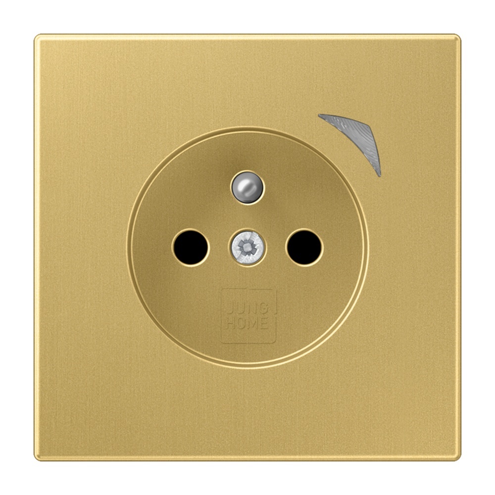 Jung JUNG HOME Steckdose BTME1521FSEC-L JUNG HOME Steckdose Energy, französisch/belgisches System, 16 A 250 V ~, mit Funktionsanzeige, SAFETY+, Serie LS, Messing classic JUNG HOME Steckdose Energy, französisch/belgisches System, Messing classic 2-polig mit Erdungsstift, 16 A 250 V ~ CEE 7/5 mit integriertem erhöhten Berührungsschutz (Safety Plus) mit Schraubklemmen für starre und flexible Leiter bis 2,5 mm2 Verbindungsklemmen nach DIN VDE 0620 Tragring, Krallen und Krallenschrauben sind über eine Erdungsschiene in die Schutzmaßnahme eingebunden. Bestimmungsgemäßer Gebrauch Manuelles oder automatisches Schalten von Beleuchtung und haushaltsüblichen Geräten Leistungs- (W) und Energiemessung (kWh) der angeschlossenen Geräte Drahtlose Verknüpfung mit Geräten des JUNG HOME Systems Einsatz im trockenen Innenbereich Montage in Gerätedose mit Abmessungen nach DIN 49073 Tiefe der Gerätedose (Innenmaß): min. 50 mm   Produkteigenschaften Inbetriebnahme und Bedienung über JUNG HOME App mit mobilem Endgerät (Smartphone oder Tablet) über Bluetooth Taste zum Schalten Mehrfarbige Statusanzeige mit optionalem Nachtmodus Sperren der lokalen Bedienung Bis zu 16 Zeitprogramme Einbindung der Last in Bereiche (Gruppen), Zentralfunktionen und Szenen Automatikfunktionen aktivieren/deaktivieren über JUNG HOME App Automatische Datum- und Uhrzeitaktualisierung bei Verbindung mit Smartphone Integrierter Schaltaktor mit 16 A Leistungsmessung von 0,1 bis 3680 Watt und Energiemessung (kWh) Aufzeichnung des Energieverlaufes letzte 24 Stunden und letzte 31 Tage (Charting) Betriebsstundenzähler, Zeitraum der Energiemessung Power-Save-Funktion (Abschalten von Standby-Verbrauchern) Master-Slave-Funktion (abhängig vom angeschlossenen Verbraucher einen drahtlos verknüpften Verbraucher einschalten) Überstrom-Schutzabschaltung Bluetooth SIG Mesh für voll verschlüsselte drahtlose Kommunikation und Repeaterfunktion Updatefähig über JUNG HOME App Zukünftig per Update verfügbar: (Hinweise zu Updates und Terminen finden sie unter jung.group/junghome) Sperr- und Zwangsführung: Dauer-EIN/AUS oder für feste Zeit EIN/AUS Zeitprogramme mit Sonnenauf- bzw. Sonnenuntergang (Astrotimer) Zeitprogramme mit Zufallszeitpunkt Ein-/ Ausschaltverzögerung Eingespeiste Leistung von -0,1 bis -3680 Watt und eingespeiste Energie (kWh) Material: Thermoplast lackiert Maße (BxH): 70 x 70 mm Hersteller Jung EAN Nr. 4011377215054 Warengruppe Jung Serie LS
