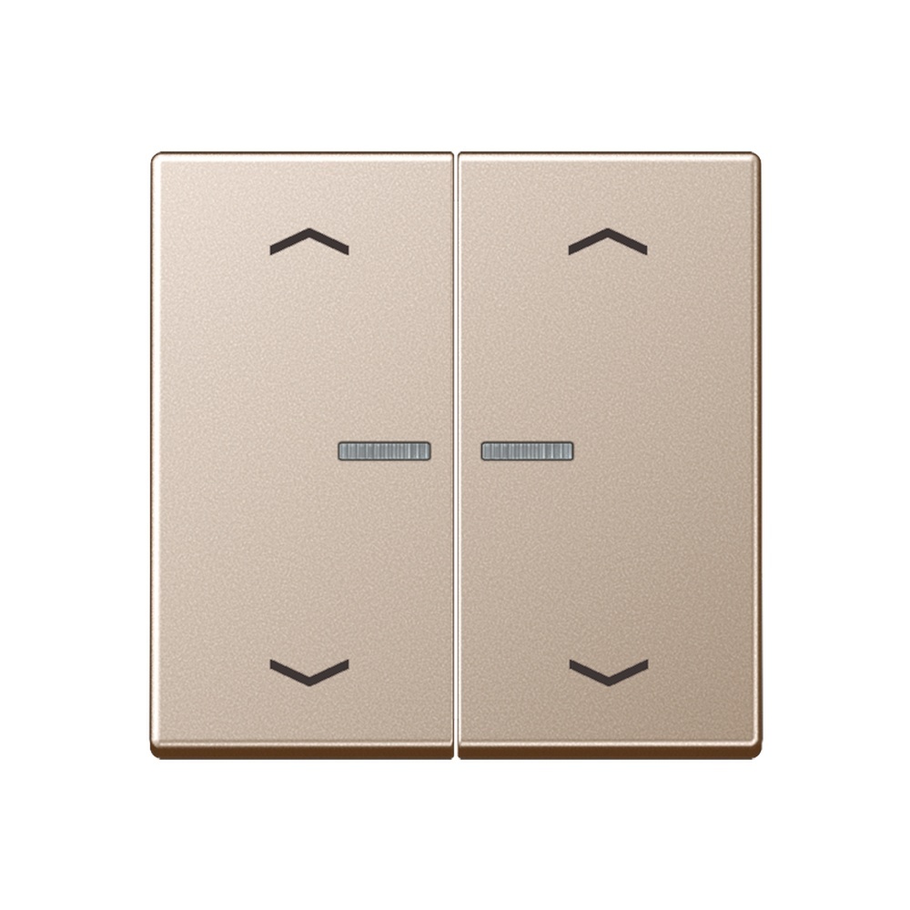 Jung JUNG HOME Taster BTA17102PCH JUNG HOME Taster 2fach, mit Pfeilsymbolen, Duroplast lackiert, Serie A, champagner für Einsätze Jalousie Art.-Nrn.: 1730 JE und 1731 JE für Einsätze Licht Art.-Nrn.: 1701 SE, 1701 PSE, 1702 SE, 1704 ESE, 1710 DE, 1711 DE, 1712 DE, 1713 DSTE, 1723 NE Bestimmungsgemäßer Gebrauch Manuelles und automatisches Bedienen von z. B. Jalousien, Rollladen, Markisen, Beleuchtung oder Lüftern Drahtlose Verknüpfung mit Geräten des JUNG HOME Systems Betrieb mit Systemeinsatz zum Schalten, Dimmen, Jalousie oder Nebenstelle 3-Draht Produkteigenschaften Inbetriebnahme und Bedienung über JUNG HOME App mit mobilem Endgerät (Smartphone oder Tablet) über Bluetooth Bedienung oben, unten und vollflächig mit bis zu 2 verknüpften Funktionen pro Wippe Tasten nutzen zur Steuerung von Bereichen (Gruppen) oder um Szenen aufzurufen Tasten nutzen, um drahtlos verknüpfte JUNG HOME Geräte zu bedienen Mehrfarbige Statusanzeige mit optionalem Nachtmodus Rückmeldung des Lastzustands über Status-LED Sperren der lokalen Bedienung Einbindung der Last in Bereiche (Gruppen), Zentralfunktionen und Szenen Bis zu 16 Zeitprogramme steuern die Funktionen des jeweiligen Systemeinsatzes (Einschalten, Aussschalten, Dimmen, Jalousie verfahren, Temperatur verstellen) Treppenlichtfunktion (automatische Abschaltung) mit Abschaltwarnung Nachlaufzeit, Einschalt- und Ausschaltverzögerung Automatikfunktionen aktivieren/deaktivieren über JUNG HOME App Automatische Datum- und Uhrzeitaktualisierung bei Verbindung mit Smartphone Maximalhelligkeit und Mindesthelligkeit einstellbar, mit Dimmeinsatz Einschalten mit letzter Helligkeit oder fester Einschalthelligkeit, mit Dimmeinsatz Lüftungsposition, Laufzeit, Lamellenumsteuerzeit, Umsteuerzeit bei Richtungswechsel und Inversbetrieb einstellbar, mit Jalousieeinsatz Auswertung der Nebenstelleneingänge (wenn vorhanden) zur Steuerung des Systemeinsatzes Bluetooth SIG Mesh für voll verschlüsselte drahtlose Kommunikation und Repeaterfunktion Updatefähig über JUNG HOME App Zukünftig per Update verfügbar: (Hinweise zu Updates und Terminen finden sie unter jung.group/junghome) Tasten nutzen, um Sperrfunktion und Zwangsführung auszulösen Zeitprogramme mit Sonnenauf- bzw. Sonnenuntergang (Astrotimer) Zeitprogramme mit Zufallszeitpunkt Sperrfunktion und Zwangsführung: Aussperrschutz, Dauer-EIN/AUS oder für feste Zeit EIN/AUS Nachtlichtfunktion mit Zeitraum für Helligkeitsabsenkung, mit Dimmeinsatz Hotelfunktion (Orientierungslicht statt AUS), mit Dimmeinsatz Warmdimmen (Ändern der Farbtemperatur mit gleichzeitiger Helligkeitszunahme), mit DALI-Einsatz Windalarm über Anschluss von konventionellen Wettersensoren an Nebenstelleneingang, mit Jalousieeinsatz Hersteller Jung EAN Nr. 4011377201118 Warengruppe Jung Serie A