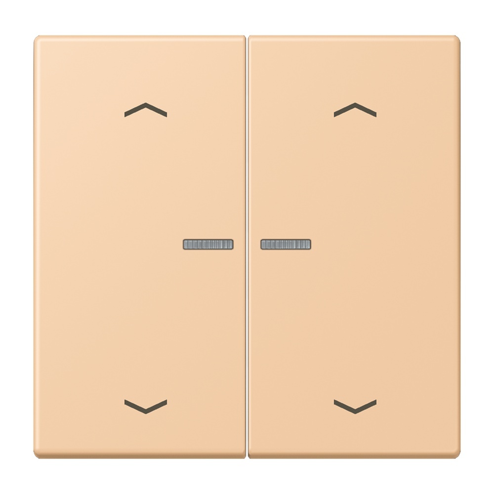 Jung JUNG HOME Taster BTLC17102P237 JUNG HOME Taster, mit Pfeilsymbolen, Duroplast lackiert, Serie LS, terre sienne claire 31 (32122) für Einsätze Jalousie Art.-Nrn.: 1730 JE und 1731 JE für Einsätze Licht Art.-Nrn.: 1701 SE, 1701 PSE, 1702 SE, 1704 ESE, 1710 DE, 1711 DE, 1712 DE, 1713 DSTE, 1723 NE Bestimmungsgemäßer Gebrauch Manuelles und automatisches Bedienen von z. B. Jalousien, Rollladen, Markisen, Beleuchtung oder Lüftern Drahtlose Verknüpfung mit Geräten des JUNG HOME Systems Betrieb mit Systemeinsatz zum Schalten, Dimmen, Jalousie oder Nebenstelle 3-Draht Produkteigenschaften Inbetriebnahme und Bedienung über JUNG HOME App mit mobilem Endgerät (Smartphone oder Tablet) über Bluetooth Bedienung oben, unten und vollflächig mit bis zu 2 verknüpften Funktionen pro Wippe Tasten nutzen zur Steuerung von Bereichen (Gruppen) oder um Szenen aufzurufen Tasten nutzen, um drahtlos verknüpfte JUNG HOME Geräte zu bedienen Mehrfarbige Statusanzeige mit optionalem Nachtmodus Rückmeldung des Lastzustands über Status-LED Sperren der lokalen Bedienung Einbindung der Last in Bereiche (Gruppen), Zentralfunktionen und Szenen Bis zu 16 Zeitprogramme steuern die Funktionen des jeweiligen Systemeinsatzes (Einschalten, Aussschalten, Dimmen, Jalousie verfahren, Temperatur verstellen) Treppenlichtfunktion (automatische Abschaltung) mit Abschaltwarnung Nachlaufzeit, Einschalt- und Ausschaltverzögerung Automatikfunktionen aktivieren/deaktivieren über JUNG HOME App Automatische Datum- und Uhrzeitaktualisierung bei Verbindung mit Smartphone Maximalhelligkeit und Mindesthelligkeit einstellbar, mit Dimmeinsatz Einschalten mit letzter Helligkeit oder fester Einschalthelligkeit, mit Dimmeinsatz Lüftungsposition, Laufzeit, Lamellenumsteuerzeit, Umsteuerzeit bei Richtungswechsel und Inversbetrieb einstellbar, mit Jalousieeinsatz Auswertung der Nebenstelleneingänge (wenn vorhanden) zur Steuerung des Systemeinsatzes Bluetooth SIG Mesh für voll verschlüsselte drahtlose Kommunikation und Repeaterfunktion Updatefähig über JUNG HOME App Zukünftig per Update verfügbar: (Hinweise zu Updates und Terminen finden sie unter jung.group/junghome) Tasten nutzen, um Sperrfunktion und Zwangsführung auszulösen Zeitprogramme mit Sonnenauf- bzw. Sonnenuntergang (Astrotimer) Zeitprogramme mit Zufallszeitpunkt Sperrfunktion und Zwangsführung: Aussperrschutz, Dauer-EIN/AUS oder für feste Zeit EIN/AUS Nachtlichtfunktion mit Zeitraum für Helligkeitsabsenkung, mit Dimmeinsatz Hotelfunktion (Orientierungslicht statt AUS), mit Dimmeinsatz Warmdimmen (Ändern der Farbtemperatur mit gleichzeitiger Helligkeitszunahme), mit DALI-Einsatz Windalarm über Anschluss von konventionellen Wettersensoren an Nebenstelleneingang, mit Jalousieeinsatz Hersteller Jung EAN Nr. 4011377312371 Warengruppe Jung Les Couleurs Le Corbusier