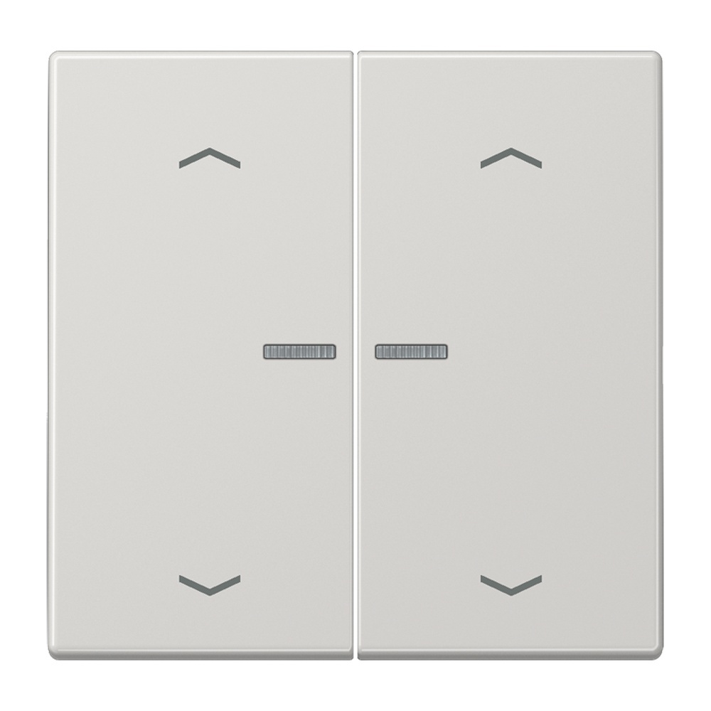 Jung JUNG HOME Taster BTLS17102PLG JUNG HOME Taster 2fach, mit Pfeilsymbolen, Duroplast, Serie LS, lichtgrau für Einsätze Jalousie Art.-Nrn.: 1730 JE und 1731 JE für Einsätze Licht Art.-Nrn.: 1701 SE, 1701 PSE, 1702 SE, 1704 ESE, 1710 DE, 1711 DE, 1712 DE, 1713 DSTE, 1723 NE Bestimmungsgemäßer Gebrauch Manuelles und automatisches Bedienen von z. B. Jalousien, Rollladen, Markisen, Beleuchtung oder Lüftern Drahtlose Verknüpfung mit Geräten des JUNG HOME Systems Betrieb mit Systemeinsatz zum Schalten, Dimmen, Jalousie oder Nebenstelle 3-Draht   Produkteigenschaften Inbetriebnahme und Bedienung über JUNG HOME App mit mobilem Endgerät (Smartphone oder Tablet) über Bluetooth Bedienung oben, unten und vollflächig mit bis zu 2 verknüpften Funktionen pro Wippe Tasten nutzen zur Steuerung von Bereichen (Gruppen) oder um Szenen aufzurufen Tasten nutzen, um drahtlos verknüpfte JUNG HOME Geräte zu bedienen Mehrfarbige Statusanzeige mit optionalem Nachtmodus Rückmeldung des Lastzustands über Status-LED Sperren der lokalen Bedienung Einbindung der Last in Bereiche (Gruppen), Zentralfunktionen und Szenen Bis zu 16 Zeitprogramme steuern die Funktionen des jeweiligen Systemeinsatzes (Einschalten, Aussschalten, Dimmen, Jalousie verfahren, Temperatur verstellen) Treppenlichtfunktion (automatische Abschaltung) mit Abschaltwarnung Nachlaufzeit, Einschalt- und Ausschaltverzögerung Automatikfunktionen aktivieren/deaktivieren über JUNG HOME App Automatische Datum- und Uhrzeitaktualisierung bei Verbindung mit Smartphone Maximalhelligkeit und Mindesthelligkeit einstellbar, mit Dimmeinsatz Einschalten mit letzter Helligkeit oder fester Einschalthelligkeit, mit Dimmeinsatz Lüftungsposition, Laufzeit, Lamellenumsteuerzeit, Umsteuerzeit bei Richtungswechsel und Inversbetrieb einstellbar, mit Jalousieeinsatz Auswertung der Nebenstelleneingänge (wenn vorhanden) zur Steuerung des Systemeinsatzes Bluetooth SIG Mesh für voll verschlüsselte drahtlose Kommunikation und Repeaterfunktion Updatefähig über JUNG HOME App Zukünftig per Update verfügbar: (Hinweise zu Updates und Terminen finden sie unter jung.group/junghome) Tasten nutzen, um Sperrfunktion und Zwangsführung auszulösen Zeitprogramme mit Sonnenauf- bzw. Sonnenuntergang (Astrotimer) Zeitprogramme mit Zufallszeitpunkt Sperrfunktion und Zwangsführung: Aussperrschutz, Dauer-EIN/AUS oder für feste Zeit EIN/AUS Nachtlichtfunktion mit Zeitraum für Helligkeitsabsenkung, mit Dimmeinsatz Hotelfunktion (Orientierungslicht statt AUS), mit Dimmeinsatz Warmdimmen (Ändern der Farbtemperatur mit gleichzeitiger Helligkeitszunahme), mit DALI-Einsatz Windalarm über Anschluss von konventionellen Wettersensoren an Nebenstelleneingang, mit Jalousieeinsatz Hersteller Jung EAN Nr. 4011377201286 Warengruppe Jung Serie LS