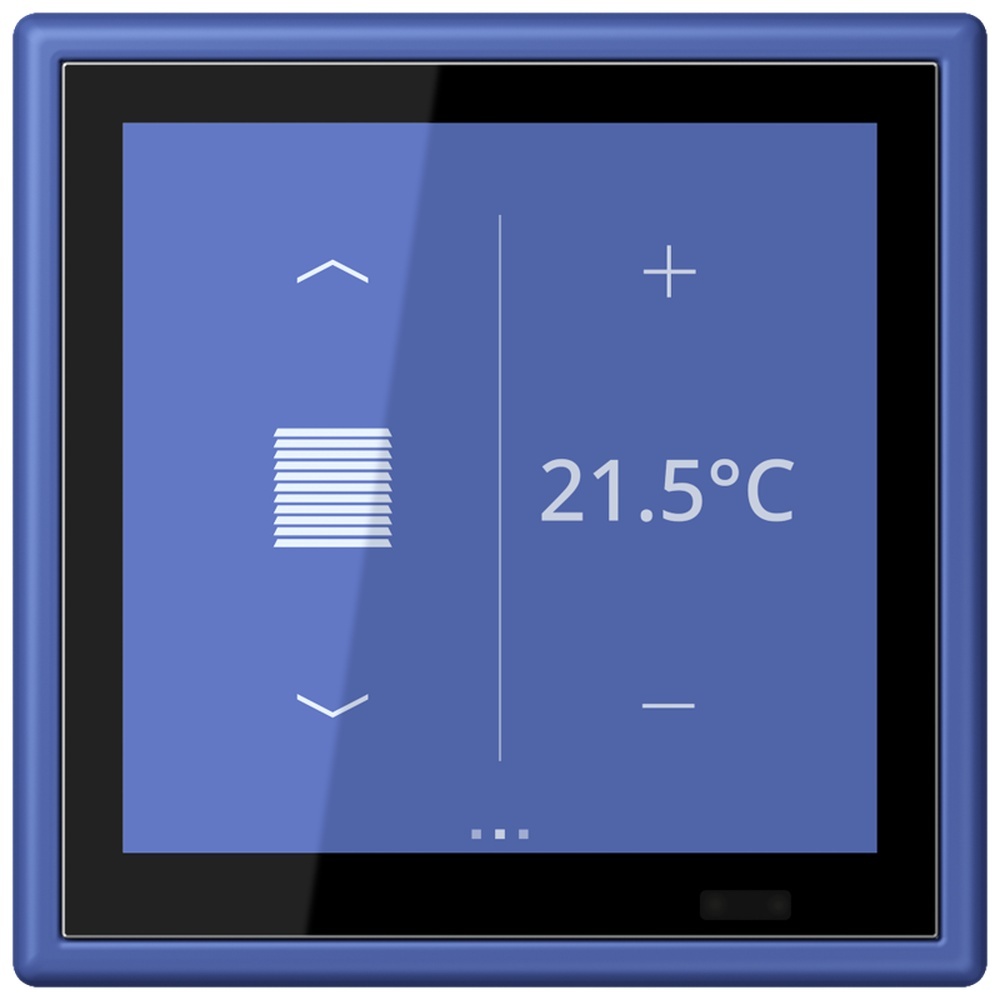 Jung KNX Raumcontroller LC459D1S206 KNX Raumcontroller LS TOUCH mit Rahmen LS 990, Serie LS, bleu outremer 31 (32020) mit integriertem 1fach-Rahmen LS 990 Nur als Einzelgerät zu montieren! Bestimmungsgemäßer Gebrauch Bedienen von Verbrauchern und Visualisieren von Anlagenzuständen und Informationen, z.B. Licht schalten und dimmen, Behänge steuern, Temperatur- und Verbrauchswerte etc. Messen und Regeln der Raumtemperatur Montage in Gerätedose mit Abmessungen nach DIN 49073 Produkteigenschaften Hochauflösendes IPS Farbdisplay Kapazitiver Touchscreen Funktionen der Favoriten-Seiten einstellbar (ohne ETS) Max. 32 Bedienfunktionen Schalten, Dimmen, Jalousiesteuerung, Wertgeber, Szenenaufruf etc. Integrierter Raumtemperaturfühler Raumtemperaturregelung mit Sollwertvorgabe Alarmfunktion (akustisch und/oder optisch) Max. 8 Zeitschaltfunktionen aktivierbar und einstellbar (abhängig von Uhrzeit, Astro oder Zufall) Integrierter Näherungs- und Helligkeitssensor Integrierter Busankoppler Anschluss von Installationstastern oder Reedkontakten möglich Inbetriebnahme und Unterstützung von KNX Data Secure mit ETS ab Version 5.7.4 Anzeige von Raum- und Soll-Temperatur Fernfühler (Art.-Nr.: FF NTC) anschließbar Anzeige der Außentemperatur – mit externem Sensor, z.B. Wetterstation In Verbindung mit JUNG Smart Visu Server: Steuerung von Musikwiedergabe und Lautstärkeregelung Hersteller Jung EAN Nr. 4011377296220 Warengruppe Jung Les Couleurs Le Corbusier