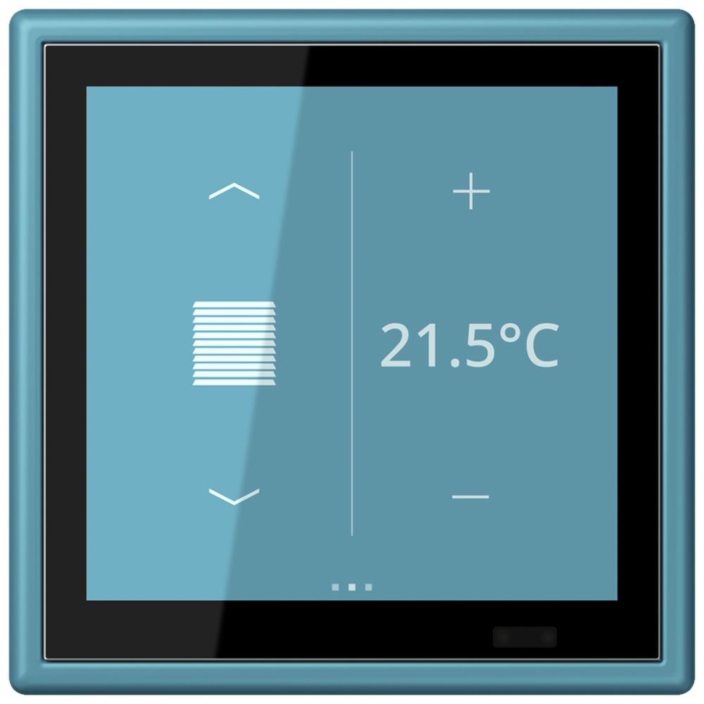 Jung KNX Raumcontroller LC459D1S212 KNX Raumcontroller LS TOUCH mit Rahmen LS 990, Serie LS, céruléen vif (32031) mit integriertem 1fach-Rahmen LS 990 Nur als Einzelgerät zu montieren! Bestimmungsgemäßer Gebrauch Bedienen von Verbrauchern und Visualisieren von Anlagenzuständen und Informationen, z.B. Licht schalten und dimmen, Behänge steuern, Temperatur- und Verbrauchswerte etc. Messen und Regeln der Raumtemperatur Montage in Gerätedose mit Abmessungen nach DIN 49073 Produkteigenschaften Hochauflösendes IPS Farbdisplay Kapazitiver Touchscreen Funktionen der Favoriten-Seiten einstellbar (ohne ETS) Max. 32 Bedienfunktionen Schalten, Dimmen, Jalousiesteuerung, Wertgeber, Szenenaufruf etc. Integrierter Raumtemperaturfühler Raumtemperaturregelung mit Sollwertvorgabe Alarmfunktion (akustisch und/oder optisch) Max. 8 Zeitschaltfunktionen aktivierbar und einstellbar (abhängig von Uhrzeit, Astro oder Zufall) Integrierter Näherungs- und Helligkeitssensor Integrierter Busankoppler Anschluss von Installationstastern oder Reedkontakten möglich Inbetriebnahme und Unterstützung von KNX Data Secure mit ETS ab Version 5.7.4 Anzeige von Raum- und Soll-Temperatur Fernfühler (Art.-Nr.: FF NTC) anschließbar Anzeige der Außentemperatur – mit externem Sensor, z.B. Wetterstation In Verbindung mit JUNG Smart Visu Server: Steuerung von Musikwiedergabe und Lautstärkeregelung Hersteller Jung EAN Nr. 4011377210127 Warengruppe Jung Les Couleurs Le Corbusier
