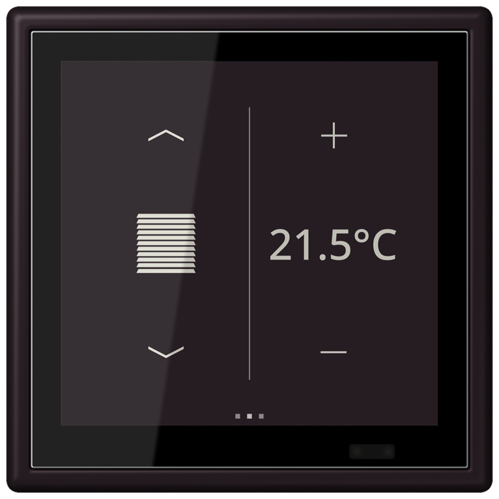 Jung KNX Raumcontroller LC459D1S248 KNX Raumcontroller LS TOUCH mit Rahmen LS 990, Serie LS, noir d'ivoire (4320E) mit integriertem 1fach-Rahmen LS 990 Nur als Einzelgerät zu montieren! Bestimmungsgemäßer Gebrauch Bedienen von Verbrauchern und Visualisieren von Anlagenzuständen und Informationen, z.B. Licht schalten und dimmen, Behänge steuern, Temperatur- und Verbrauchswerte etc. Messen und Regeln der Raumtemperatur Montage in Gerätedose mit Abmessungen nach DIN 49073 Produkteigenschaften Hochauflösendes IPS Farbdisplay Kapazitiver Touchscreen Funktionen der Favoriten-Seiten einstellbar (ohne ETS) Max. 32 Bedienfunktionen Schalten, Dimmen, Jalousiesteuerung, Wertgeber, Szenenaufruf etc. Integrierter Raumtemperaturfühler Raumtemperaturregelung mit Sollwertvorgabe Alarmfunktion (akustisch und/oder optisch) Max. 8 Zeitschaltfunktionen aktivierbar und einstellbar (abhängig von Uhrzeit, Astro oder Zufall) Integrierter Näherungs- und Helligkeitssensor Integrierter Busankoppler Anschluss von Installationstastern oder Reedkontakten möglich Inbetriebnahme und Unterstützung von KNX Data Secure mit ETS ab Version 5.7.4 Anzeige von Raum- und Soll-Temperatur Fernfühler (Art.-Nr.: FF NTC) anschließbar Anzeige der Außentemperatur – mit externem Sensor, z.B. Wetterstation In Verbindung mit JUNG Smart Visu Server: Steuerung von Musikwiedergabe und Lautstärkeregelung Hersteller Jung EAN Nr. 4011377210547 Warengruppe Jung Les Couleurs Le Corbusier