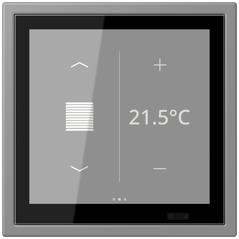 Jung KNX Raumcontroller LCZ459BFD1S203 KNX Raumcontroller LS TOUCH mit Rahmen LS ZERO, Serie LS, gris 31 (32011) mit integriertem 1fach-Rahmen LS ZERO inklusive Saugheber (Art.-Nr.: W-HEBER) zur Demontage des Gerätes vom Tragring Nur als Einzelgerät zu montieren! Bestimmungsgemäßer Gebrauch Bedienen von Verbrauchern und Visualisieren von Anlagenzuständen und Informationen, z.B. Licht schalten und dimmen, Behänge steuern, Temperatur- und Verbrauchswerte etc. Messen und Regeln der Raumtemperatur Montage in Gerätedose mit Abmessungen nach DIN 49073 Produkteigenschaften Hochauflösendes IPS Farbdisplay Kapazitiver Touchscreen Funktionen der Favoriten-Seiten einstellbar (ohne ETS) Max. 32 Bedienfunktionen Schalten, Dimmen, Jalousiesteuerung, Wertgeber, Szenenaufruf etc. Integrierter Raumtemperaturfühler Raumtemperaturregelung mit Sollwertvorgabe Alarmfunktion (akustisch und/oder optisch) Max. 8 Zeitschaltfunktionen aktivierbar und einstellbar (abhängig von Uhrzeit, Astro oder Zufall) Integrierter Näherungs- und Helligkeitssensor Integrierter Busankoppler Anschluss von Installationstastern oder Reedkontakten möglich Inbetriebnahme und Unterstützung von KNX Data Secure mit ETS ab Version 5.7.4 Anzeige von Raum- und Soll-Temperatur Fernfühler (Art.-Nr.: FF NTC) anschließbar Anzeige der Außentemperatur – mit externem Sensor, z.B. Wetterstation In Verbindung mit JUNG Smart Visu Server: Steuerung von Musikwiedergabe und Lautstärkeregelung Hersteller Jung EAN Nr. 4011377210752 Warengruppe Jung Les Couleurs Le Corbusier