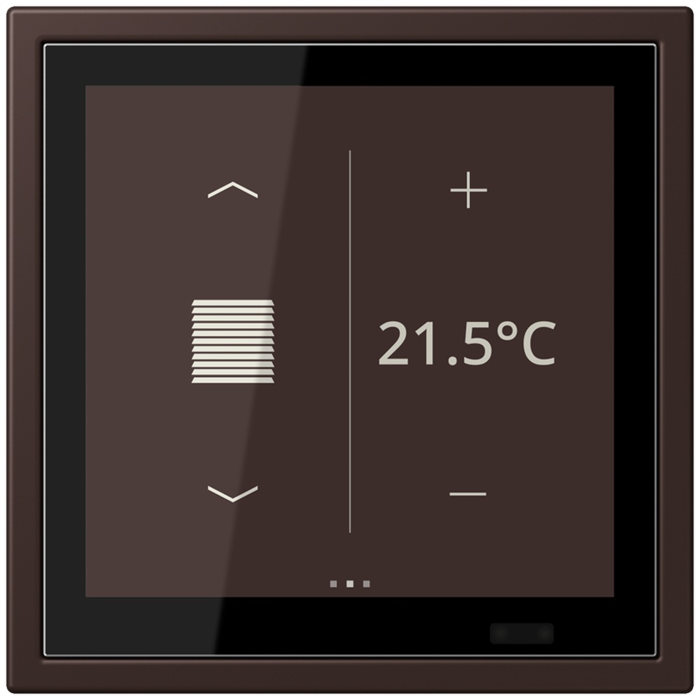 Jung KNX Raumcontroller LCZ459BFD1S252 KNX Raumcontroller LS TOUCH mit Rahmen LS ZERO, Serie LS, terre d‘ombre brûlée 59 (4320J) mit integriertem 1fach-Rahmen LS ZERO inklusive Saugheber (Art.-Nr.: W-HEBER) zur Demontage des Gerätes vom Tragring Nur als Einzelgerät zu montieren! Bestimmungsgemäßer Gebrauch Bedienen von Verbrauchern und Visualisieren von Anlagenzuständen und Informationen, z.B. Licht schalten und dimmen, Behänge steuern, Temperatur- und Verbrauchswerte etc. Messen und Regeln der Raumtemperatur Montage in Gerätedose mit Abmessungen nach DIN 49073 Produkteigenschaften Hochauflösendes IPS Farbdisplay Kapazitiver Touchscreen Funktionen der Favoriten-Seiten einstellbar (ohne ETS) Max. 32 Bedienfunktionen Schalten, Dimmen, Jalousiesteuerung, Wertgeber, Szenenaufruf etc. Integrierter Raumtemperaturfühler Raumtemperaturregelung mit Sollwertvorgabe Alarmfunktion (akustisch und/oder optisch) Max. 8 Zeitschaltfunktionen aktivierbar und einstellbar (abhängig von Uhrzeit, Astro oder Zufall) Integrierter Näherungs- und Helligkeitssensor Integrierter Busankoppler Anschluss von Installationstastern oder Reedkontakten möglich Inbetriebnahme und Unterstützung von KNX Data Secure mit ETS ab Version 5.7.4 Anzeige von Raum- und Soll-Temperatur Fernfühler (Art.-Nr.: FF NTC) anschließbar Anzeige der Außentemperatur – mit externem Sensor, z.B. Wetterstation In Verbindung mit JUNG Smart Visu Server: Steuerung von Musikwiedergabe und Lautstärkeregelung Hersteller Jung EAN Nr. 4011377211285 Warengruppe Jung Les Couleurs Le Corbusier