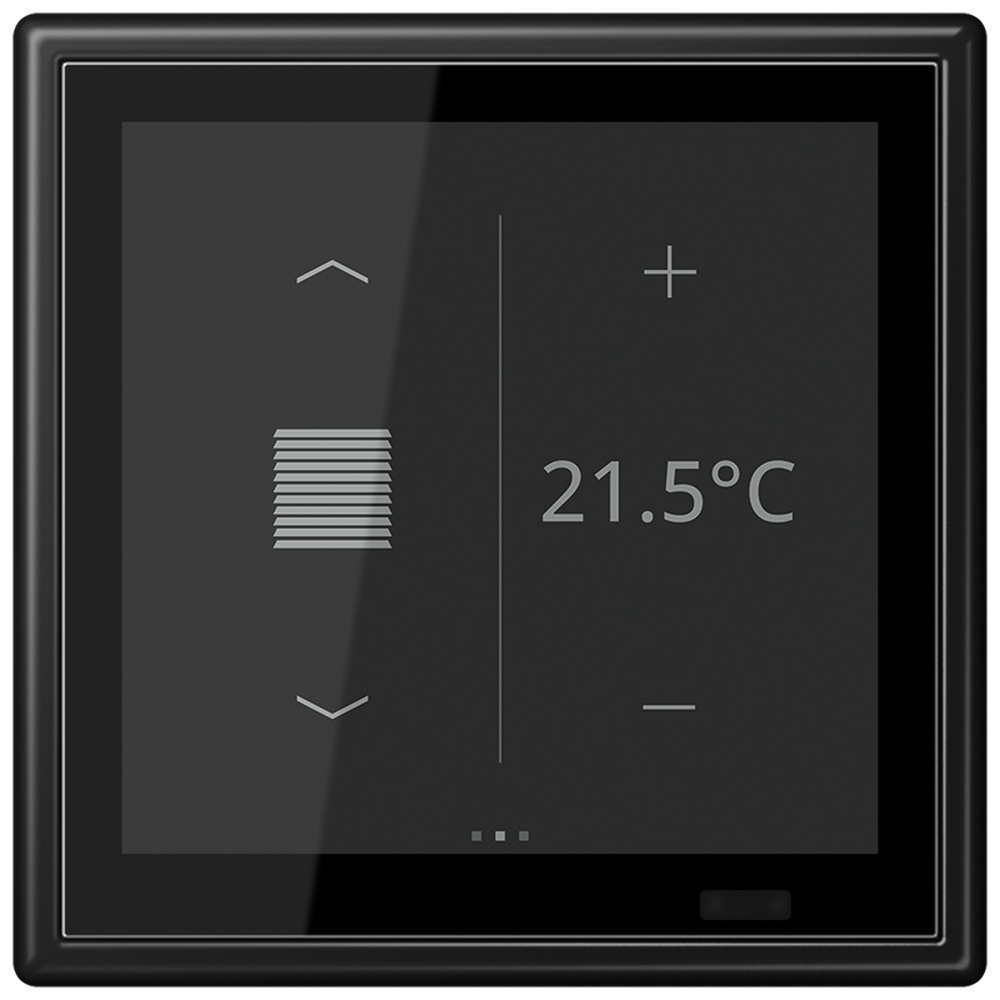 Jung KNX Raumcontroller LS459D1SSWM KNX Raumcontroller LS TOUCH mit Rahmen LS 990, Serie LS, graphitschwarz matt mit integriertem 1fach-Rahmen LS 990 Nur als Einzelgerät zu montieren! Bestimmungsgemäßer Gebrauch Bedienen von Verbrauchern und Visualisieren von Anlagenzuständen und Informationen, z.B. Licht schalten und dimmen, Behänge steuern, Temperatur- und Verbrauchswerte etc. Messen und Regeln der Raumtemperatur Montage in Gerätedose mit Abmessungen nach DIN 49073 Produkteigenschaften Hochauflösendes IPS Farbdisplay Kapazitiver Touchscreen Funktionen der Favoriten-Seiten einstellbar (ohne ETS) Max. 32 Bedienfunktionen Schalten, Dimmen, Jalousiesteuerung, Wertgeber, Szenenaufruf etc. Integrierter Raumtemperaturfühler Raumtemperaturregelung mit Sollwertvorgabe Alarmfunktion (akustisch und/oder optisch) Max. 8 Zeitschaltfunktionen aktivierbar und einstellbar (abhängig von Uhrzeit, Astro oder Zufall) Integrierter Näherungs- und Helligkeitssensor Integrierter Busankoppler Anschluss von Installationstastern oder Reedkontakten möglich Inbetriebnahme und Unterstützung von KNX Data Secure mit ETS ab Version 5.7.4 Anzeige von Raum- und Soll-Temperatur Fernfühler (Art.-Nr.: FF NTC) anschließbar Anzeige der Außentemperatur – mit externem Sensor, z.B. Wetterstation In Verbindung mit JUNG Smart Visu Server: Steuerung von Musikwiedergabe und Lautstärkeregelung Hersteller Jung EAN Nr. 4011377194984 Warengruppe Jung Serie LS