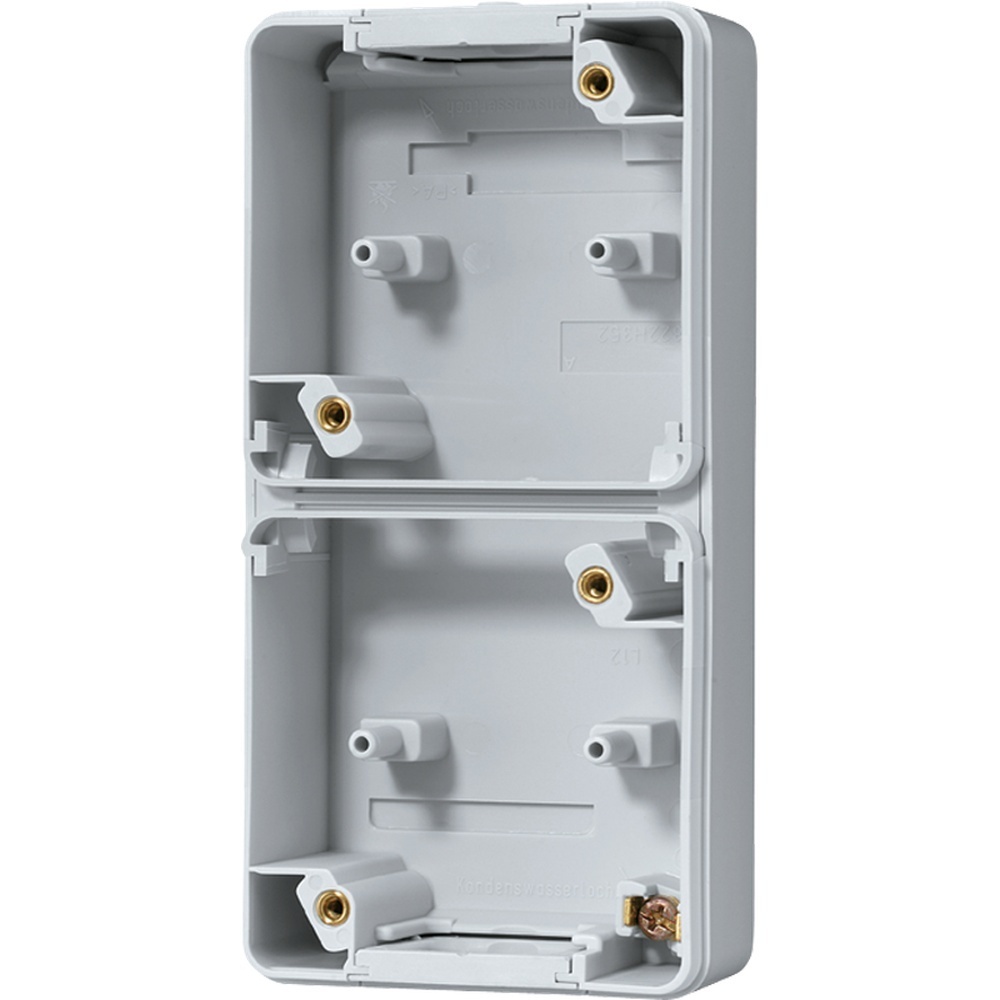 Jung Montagegehäuse 820 Montagegehäuse, 2 Leitungseinführungen 2fach, senkrechte Montage, Thermoplast, WG 800, grau für 2 Elemente, senkrecht2 Leitungseinführungen Hersteller Jung Nr. 820 EAN Nr. 4011377668607 Warengruppe Jung Technik