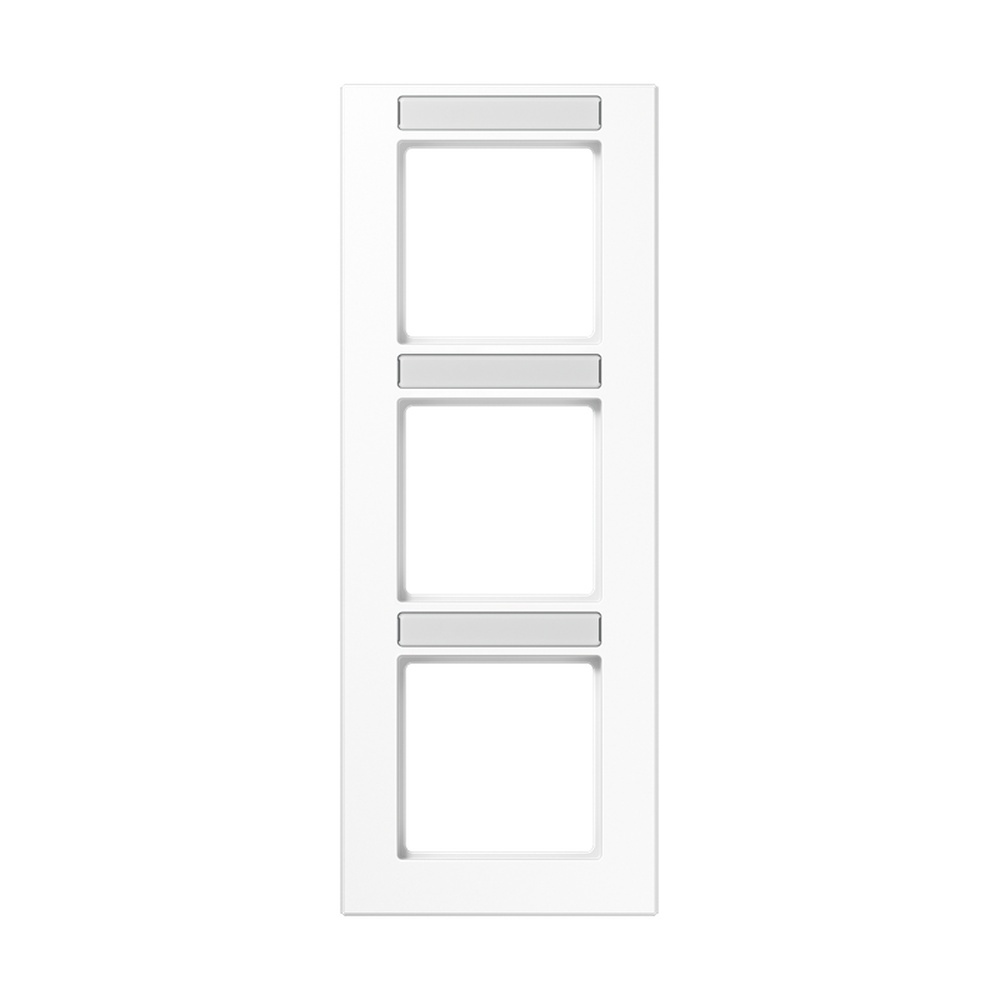 Jung Rahmen 3fach AC 583 BFNA WW Rahmen, 3fach, mit Schriftfeld 9x55 mm, bruchsicher, für senkrechte Kombination Hersteller Albrecht Jung GmbH & Co. KG Typ AC583BFNAWW EAN Nr. 4011377105980 Warengruppe Jung Serie A