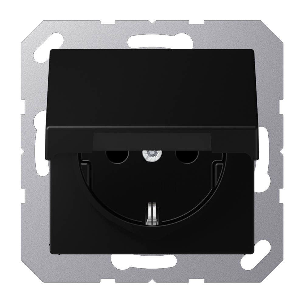 Jung SCHUKO Steckdose A1520BFKLSWM SCHUKO Steckdose, 16 A 250 V, Klappdeckel, Serie A, graphitschwarz matt mit Klappdeckel (mit Rückstellfeder) mit Federklemmen für starre und unbehandelte flexible Leiter bis 2,5 mm2 Verbindungsklemmen nach DIN VDE 0620 Ohne Befestigungskralle Art-Nr. mit N, z.B. 1520 N Preise wie Normalausführung. Tragring, Krallen und Krallenschrauben sind über eine Erdungsschiene in die Schutzmaßnahme eingebunden. Hersteller Albrecht Jung GmbH & Co. KG EAN Nr. 4011377185838 Warengruppe Jung Serie A