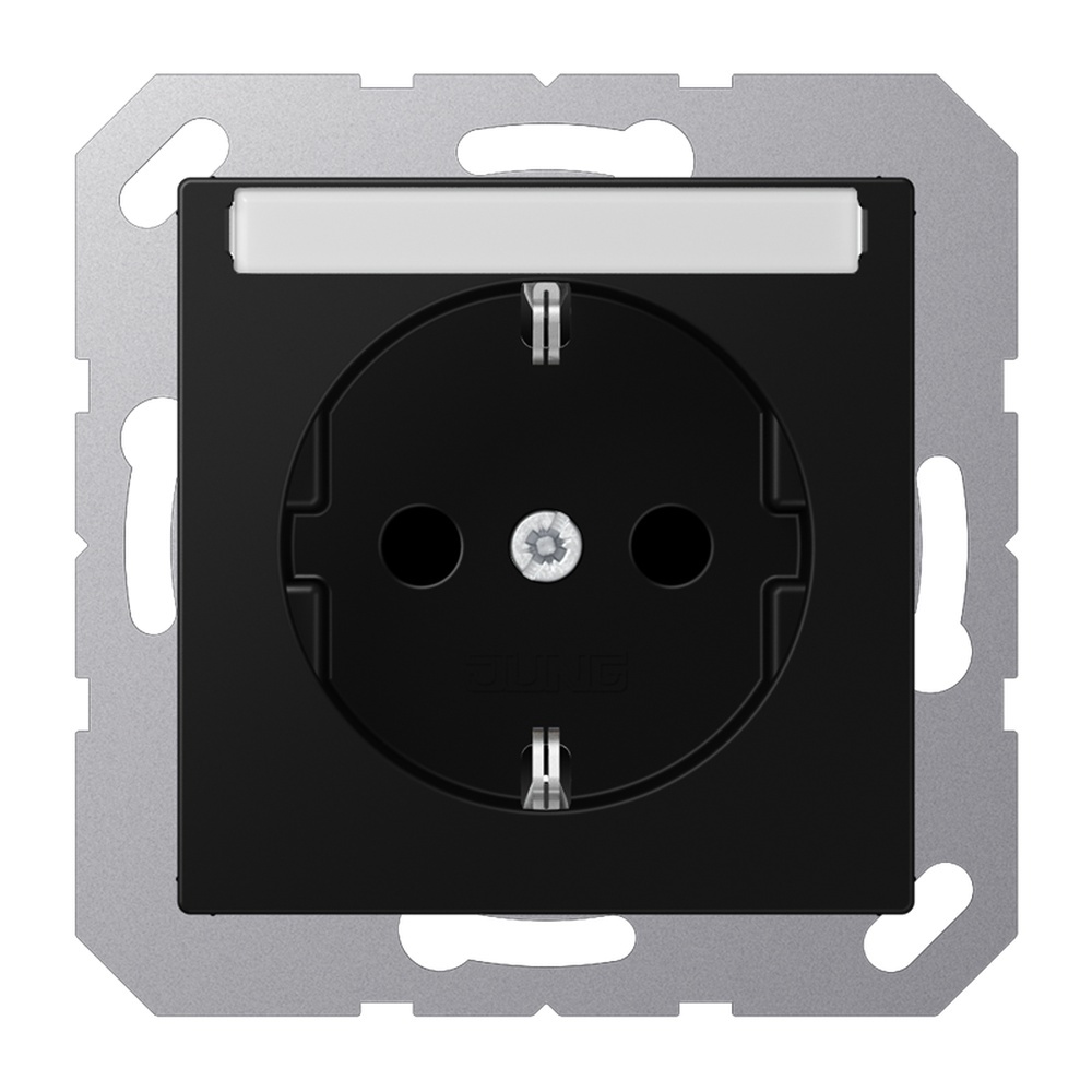 Jung SCHUKO Steckdose A1520BFNASWM SCHUKO Steckdose, 16 A 250 V, mit Schriftfeld, Serie A, graphitschwarz matt mit Schriftfeld 6 x 46 mm mit Federklemmen für starre und unbehandelte flexible Leiter bis 2,5 mm2 Verbindungsklemmen nach DIN VDE 0620 Ohne Befestigungskralle Art-Nr. mit N, z.B. 1520 N Preise wie Normalausführung. Tragring, Krallen und Krallenschrauben sind über eine Erdungsschiene in die Schutzmaßnahme eingebunden. Hersteller Albrecht Jung GmbH & Co. KG EAN Nr. 4011377189119 Warengruppe Jung Serie A
